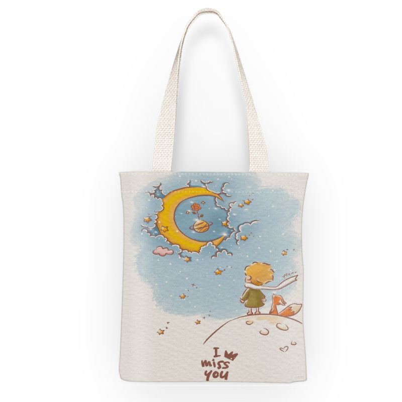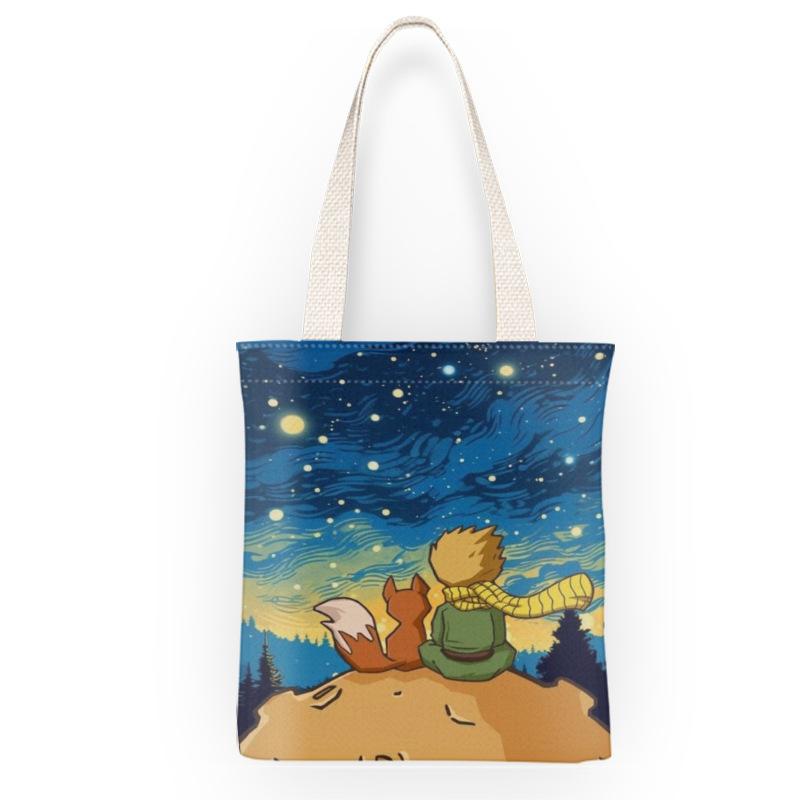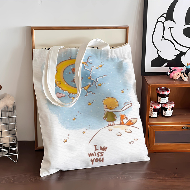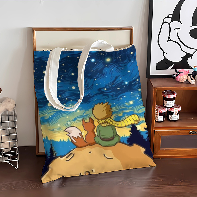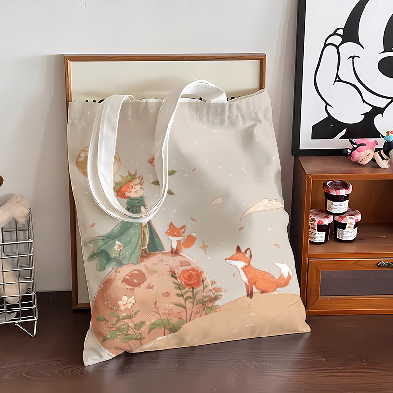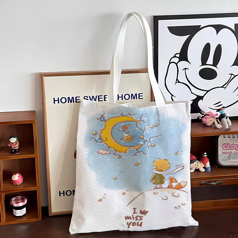 스타 리틀 프린스 만화 캔버스 가방 로즈 휴대용 문서 가방 학생 도서 휴대용 보관 가방스토어 가기