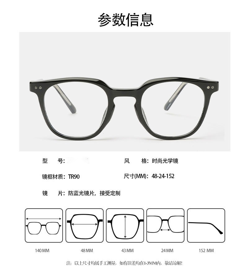 레트로 안티 블루 라이트 안경 여성의 눈 보호 대형 프레임 TR90 삽입 블랙 프레임 안경 프레임 남성 근시 플랫 렌즈스토어 가기