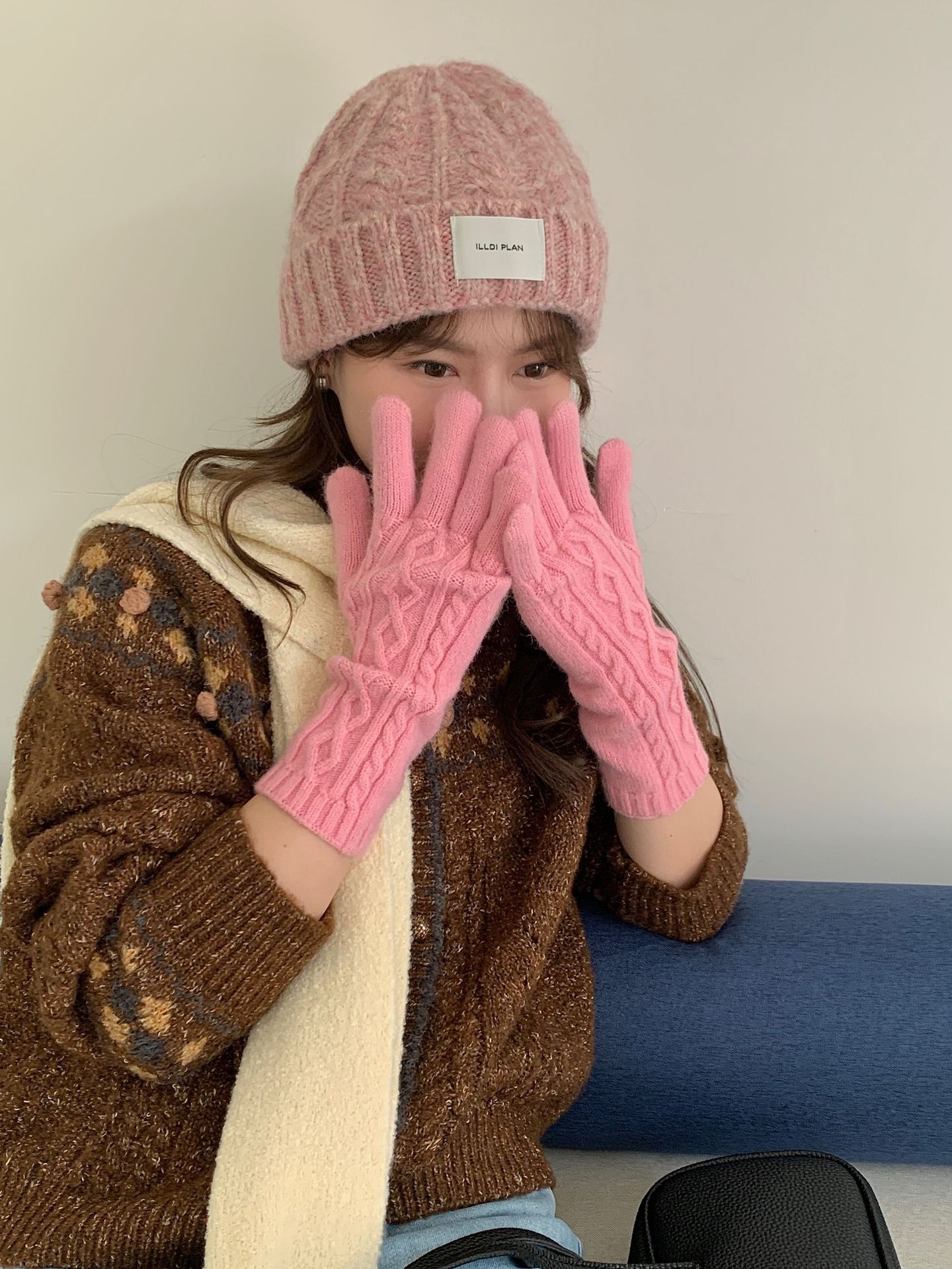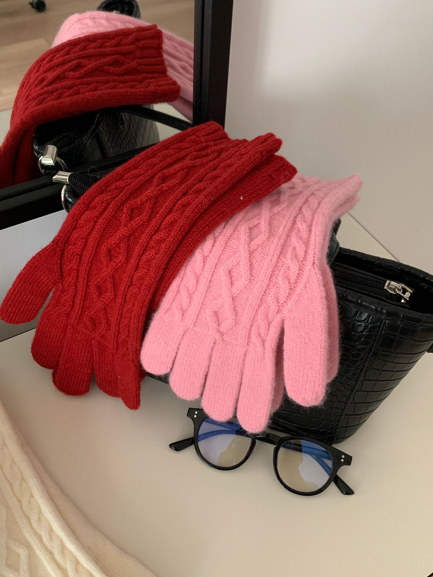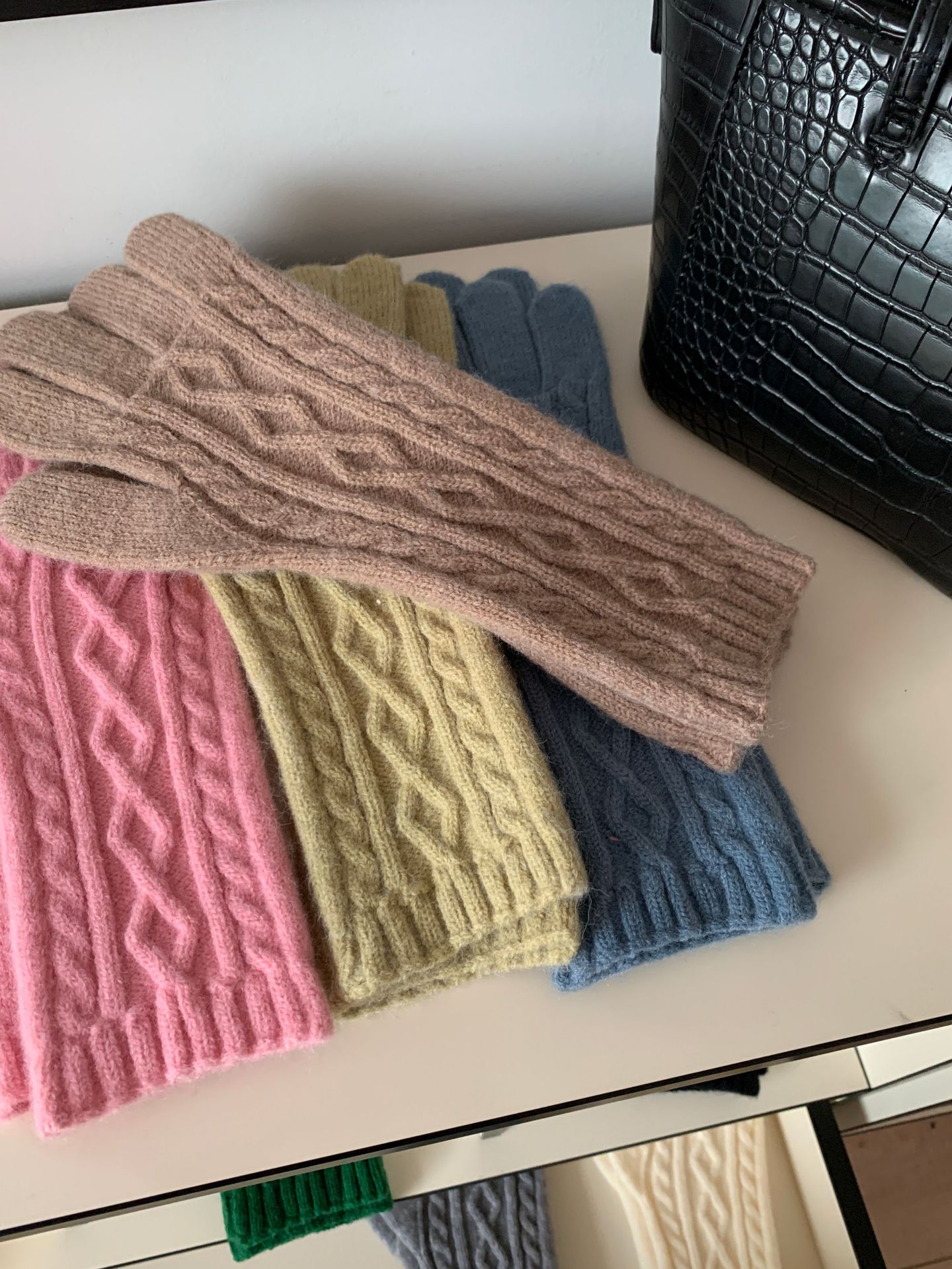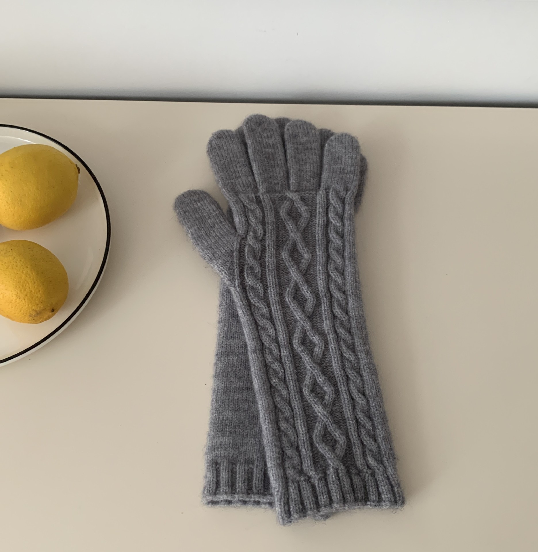 2024 새로운 솔리드 컬러 트위스트 두꺼운 바늘 장갑 여성용 오픈 핑거 터치 스크린 따뜻한 야외 사이클링 울 장갑 트렌디스토어 가기