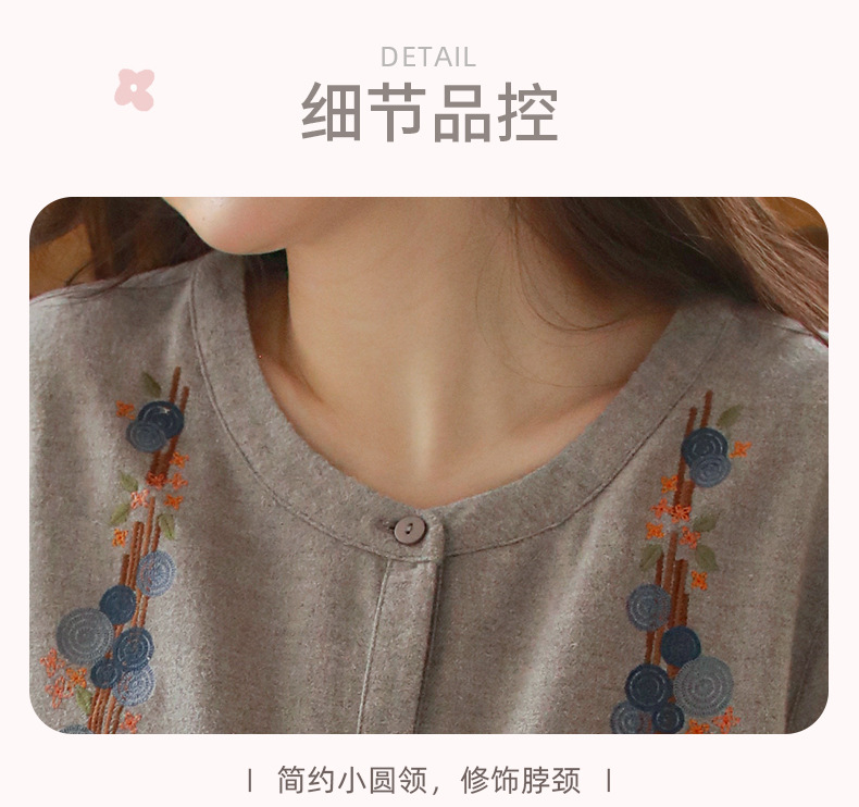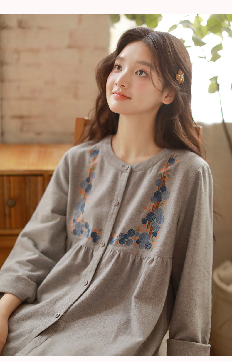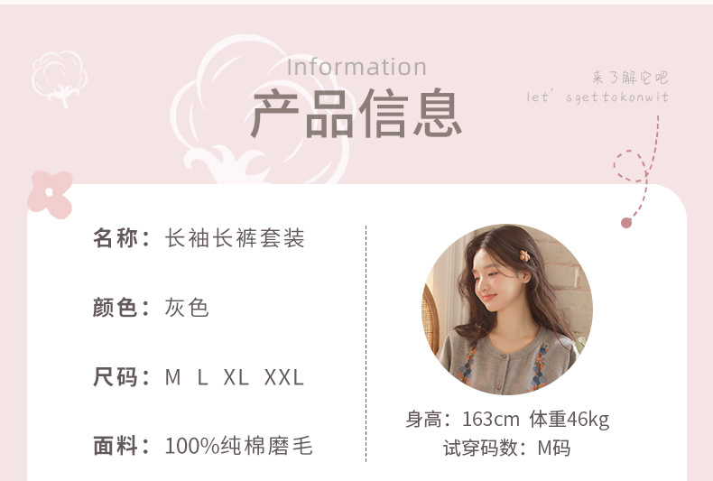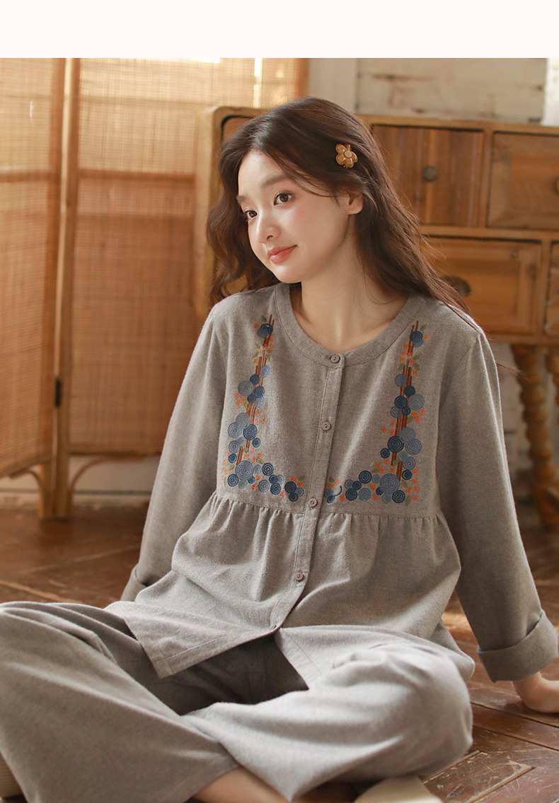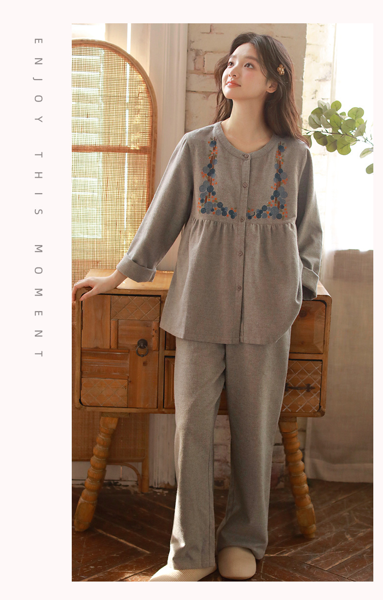 가을과 겨울 새로운 면 브러시 양털 자수 긴팔 여성용 홈 옷 둥근 목 달콤한 외부 플러스 사이즈 잠옷스토어 가기