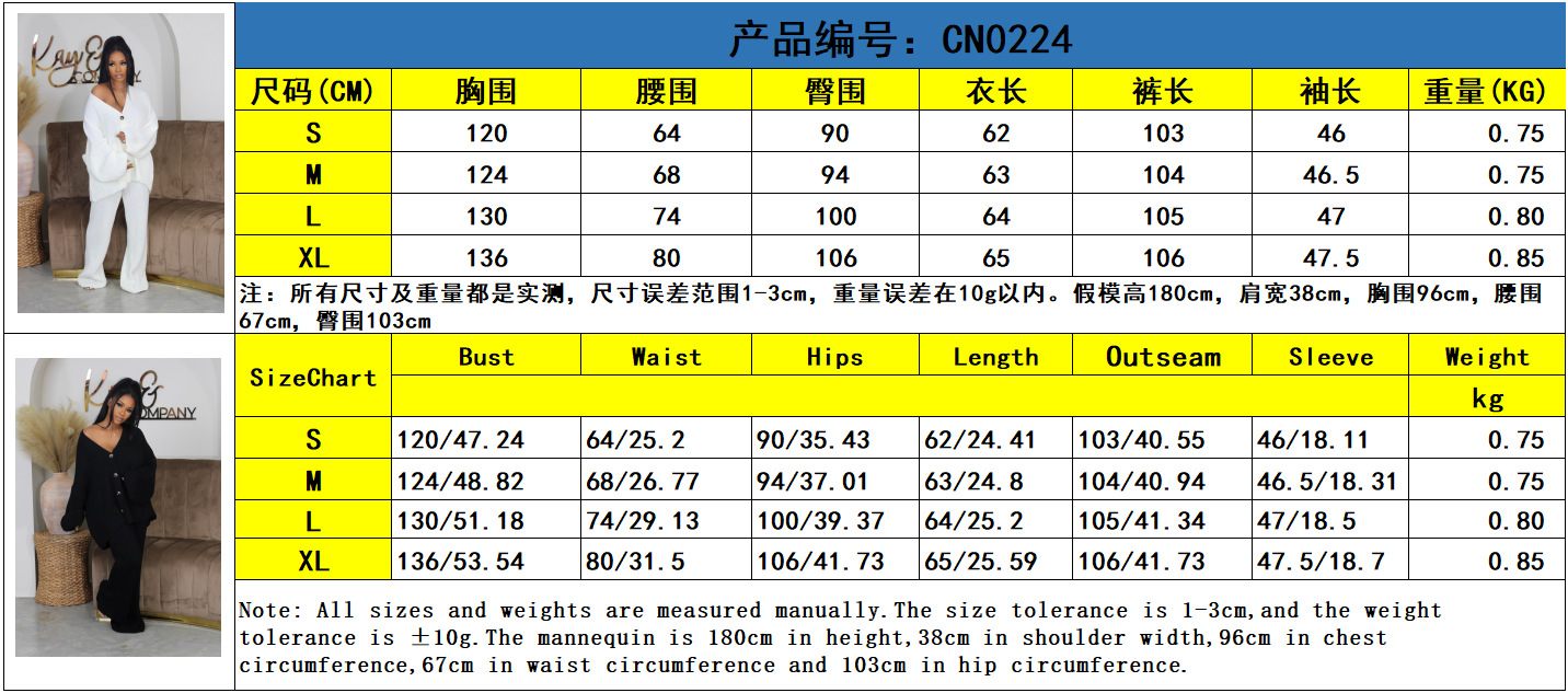 CN0224 유럽과 미국 여성의 2024 가을과 겨울 새로운 단색 V 넥 브레스트 카디건 넓은 다리 바지 스웨터 세트스토어 가기
