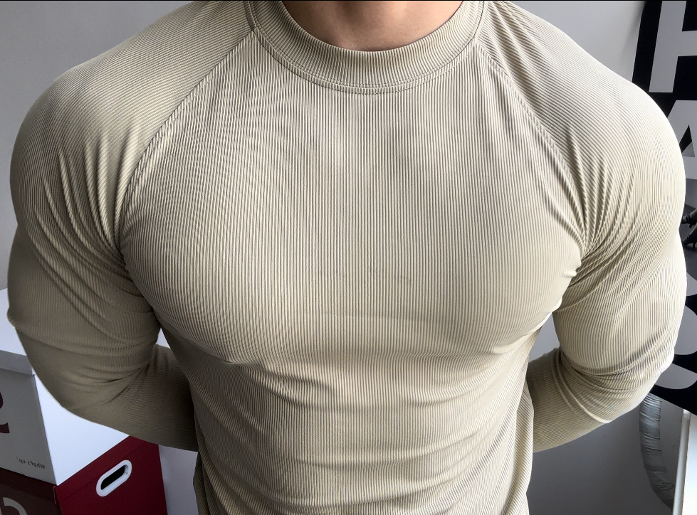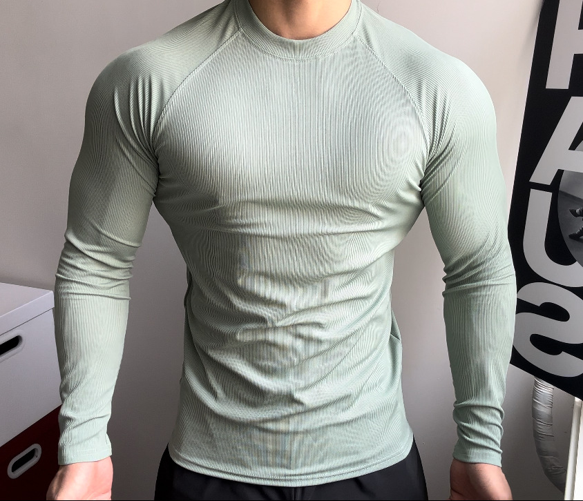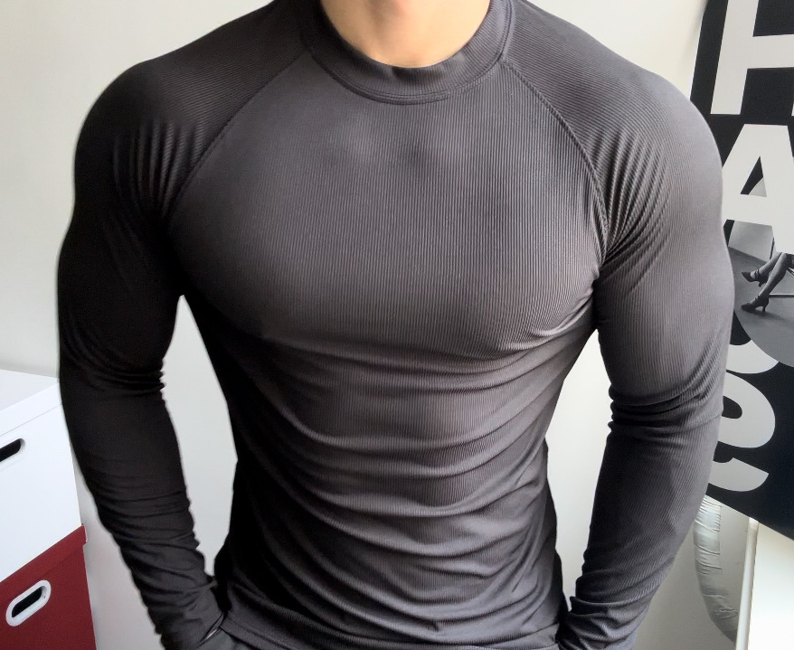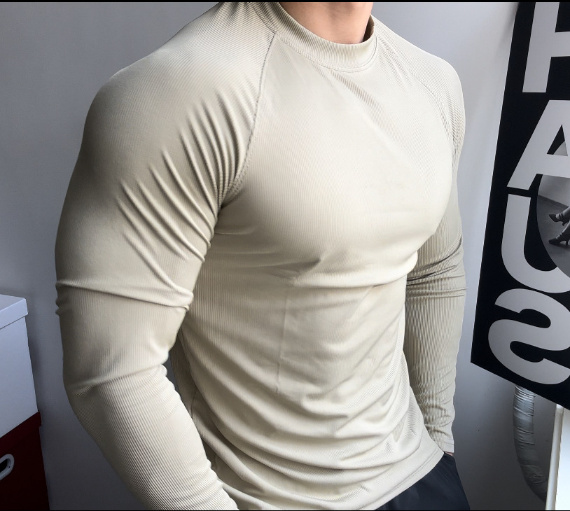 근육 남성 스포츠 긴팔 유행 고탄성 단색 장비 훈련 대형 피트니스 옷 빠른 건조 작은 칼라 탑스토어 가기