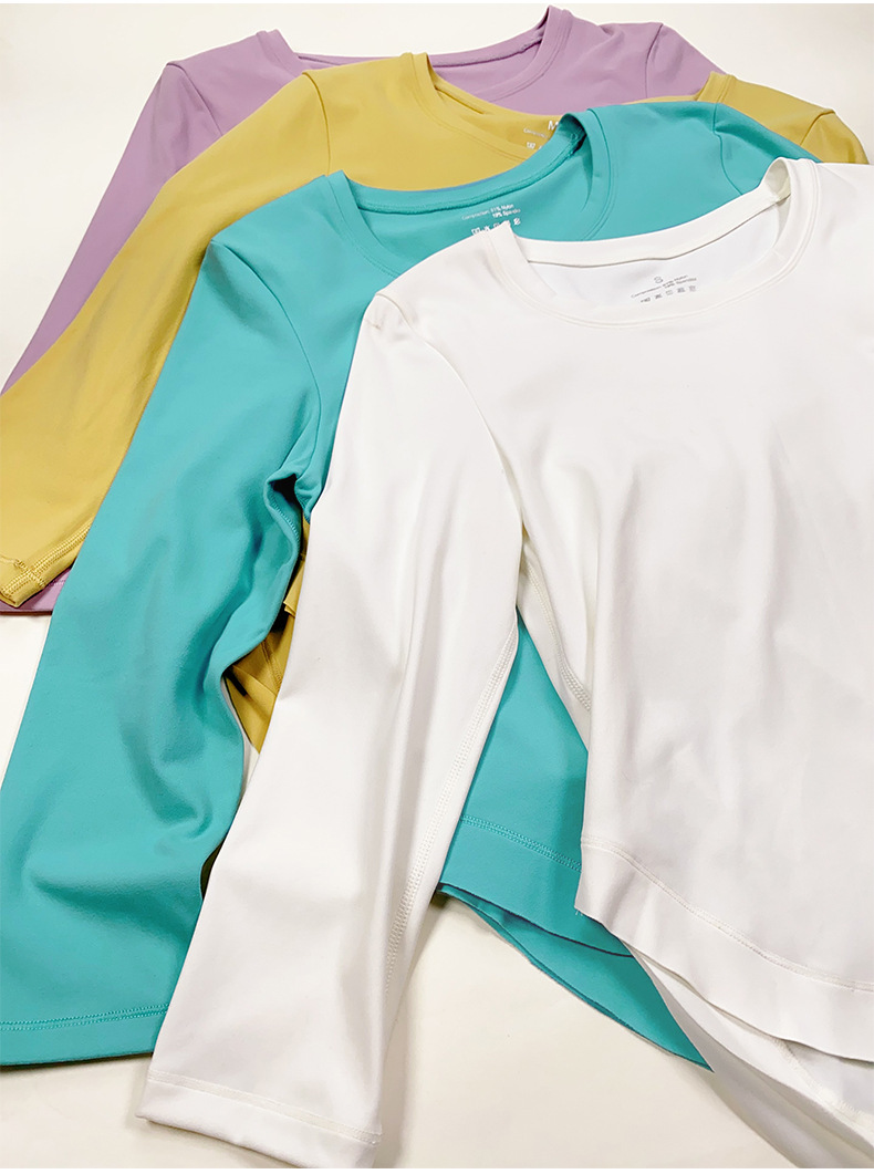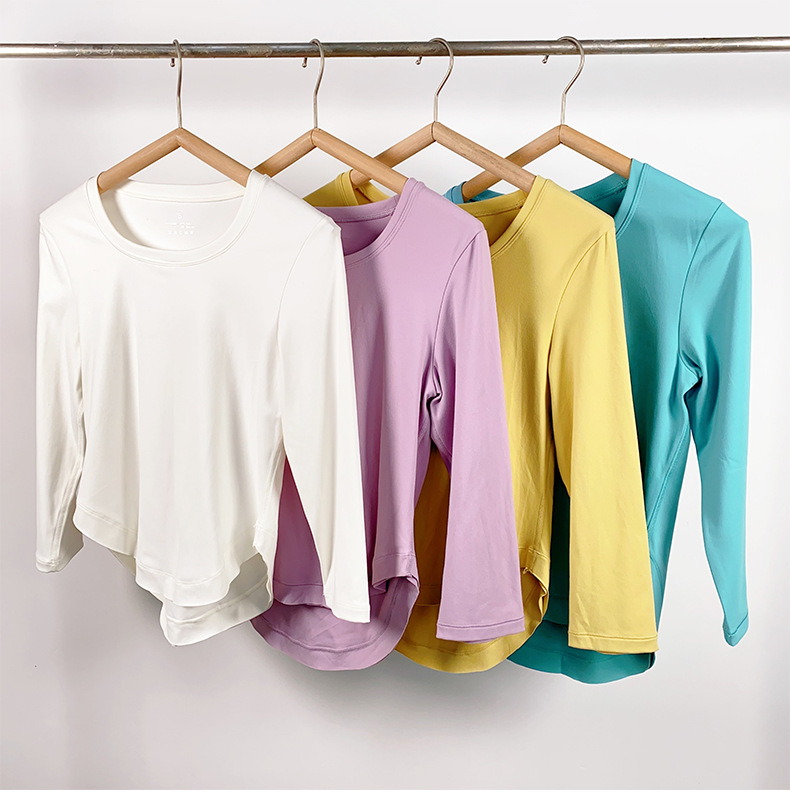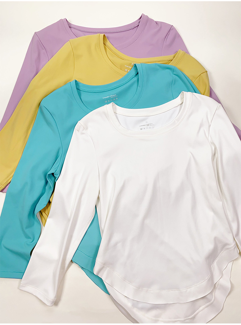 여성용 라운드넥 긴팔 요가복 슬림핏 러닝 스포츠 탑 티셔츠 필라테스 트레이닝 피트니스복 여름스토어 가기