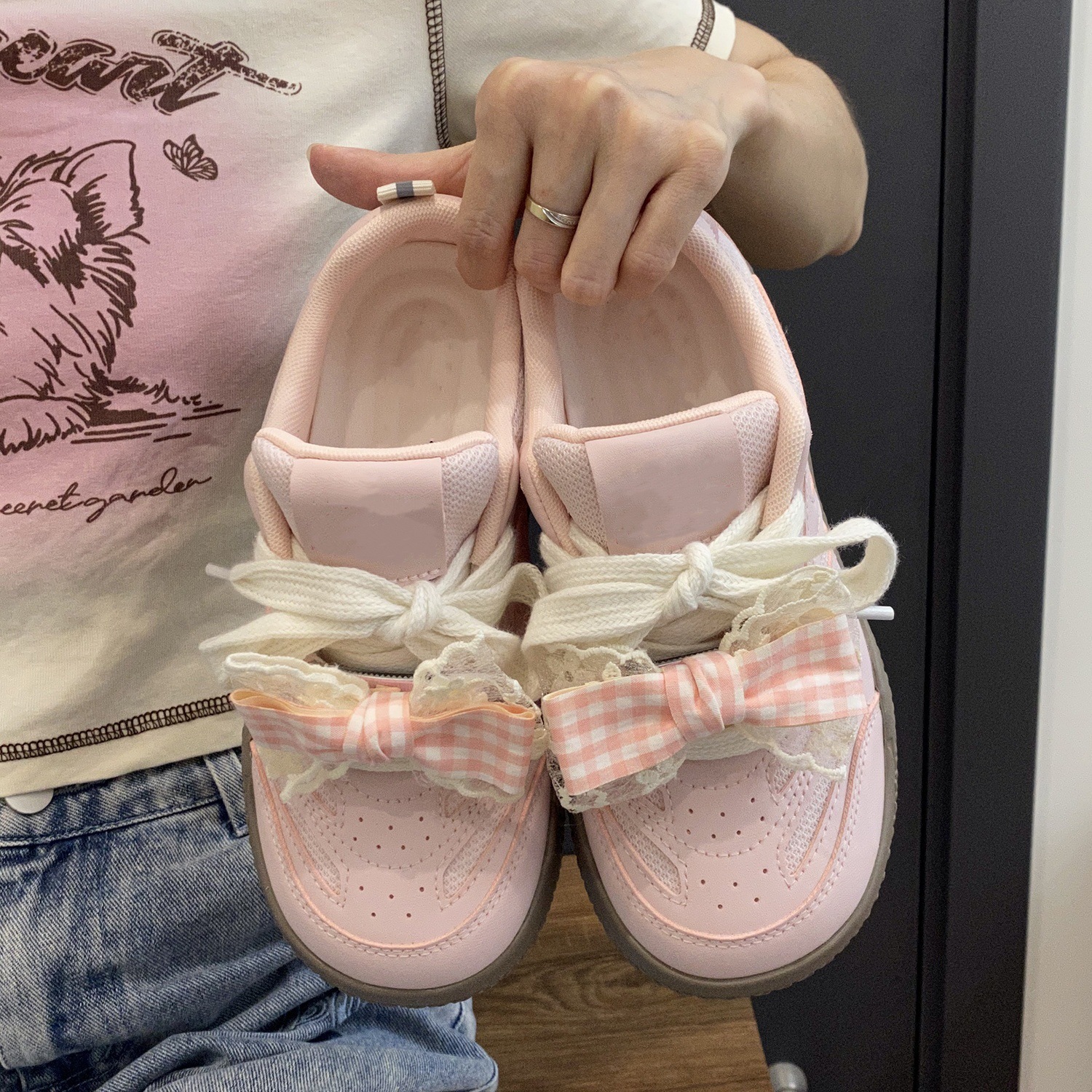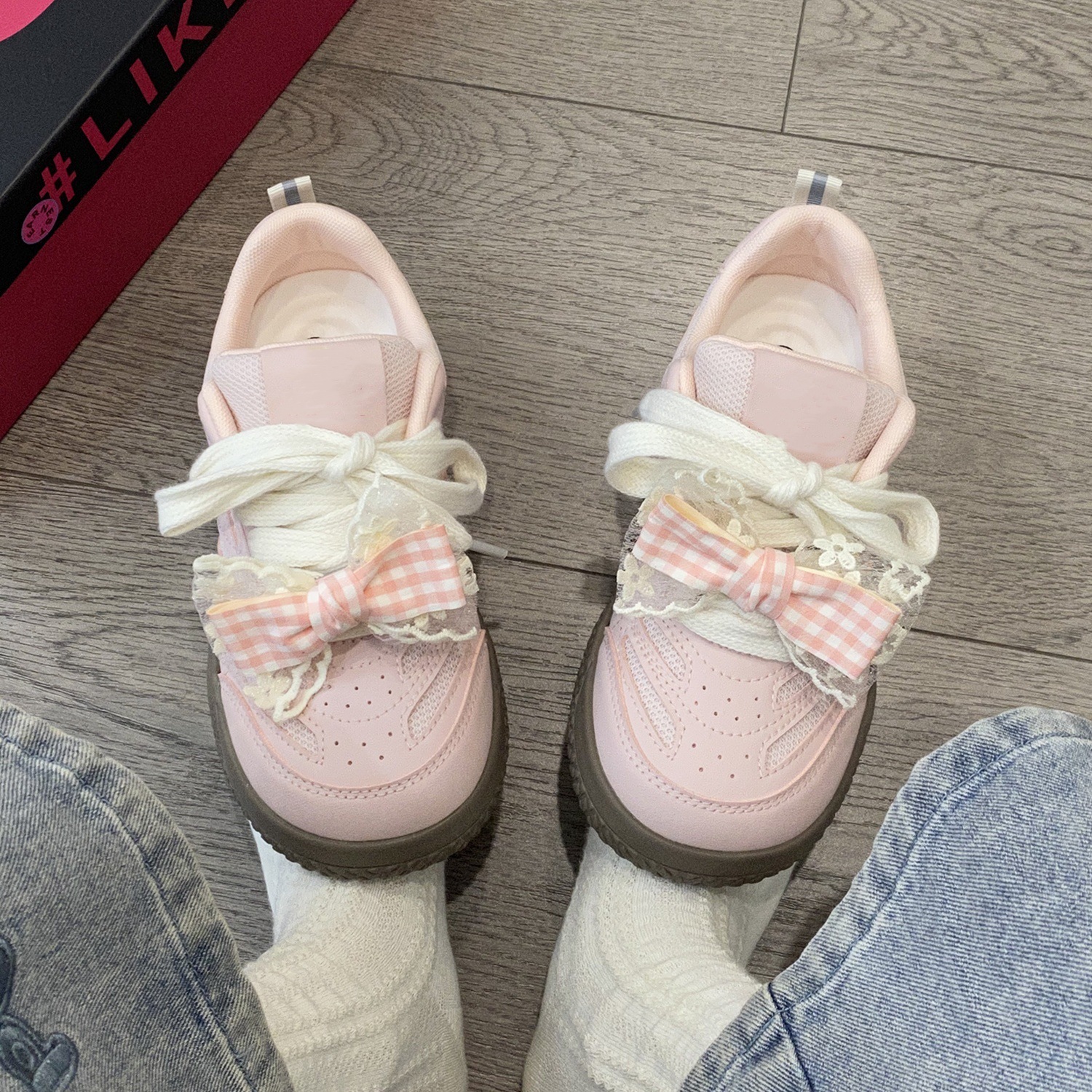 2025년 가을 신상 여성용 데쿠티 신발, 리본 장식의 화이트 슈즈, 발을 작아 보이게 하는 스포츠 캐주얼 시크 스니커즈, 빵신발스토어 가기