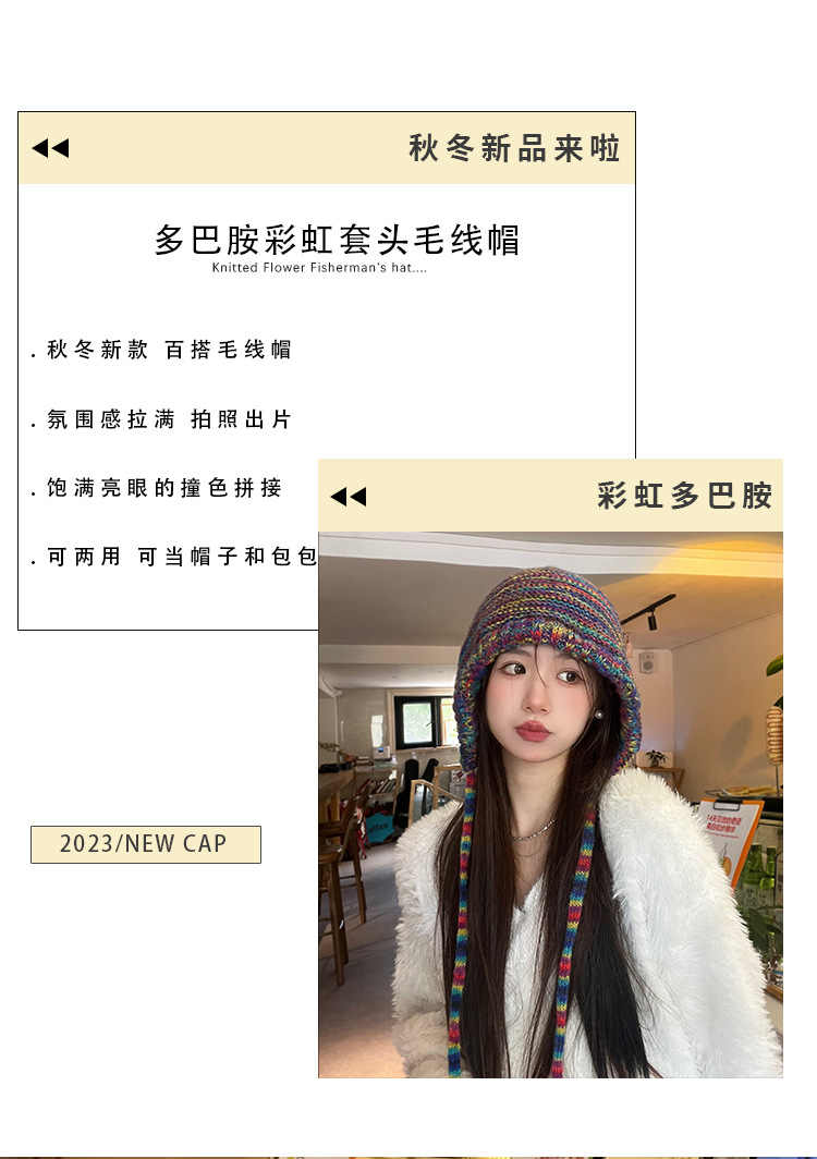달콤한 무지개 그라디언트 도파민 양모 모자 어린이 가을과 겨울 얼굴 작은 따뜻한 니트 모자 Lei Feng 모자 트렌디스토어 가기