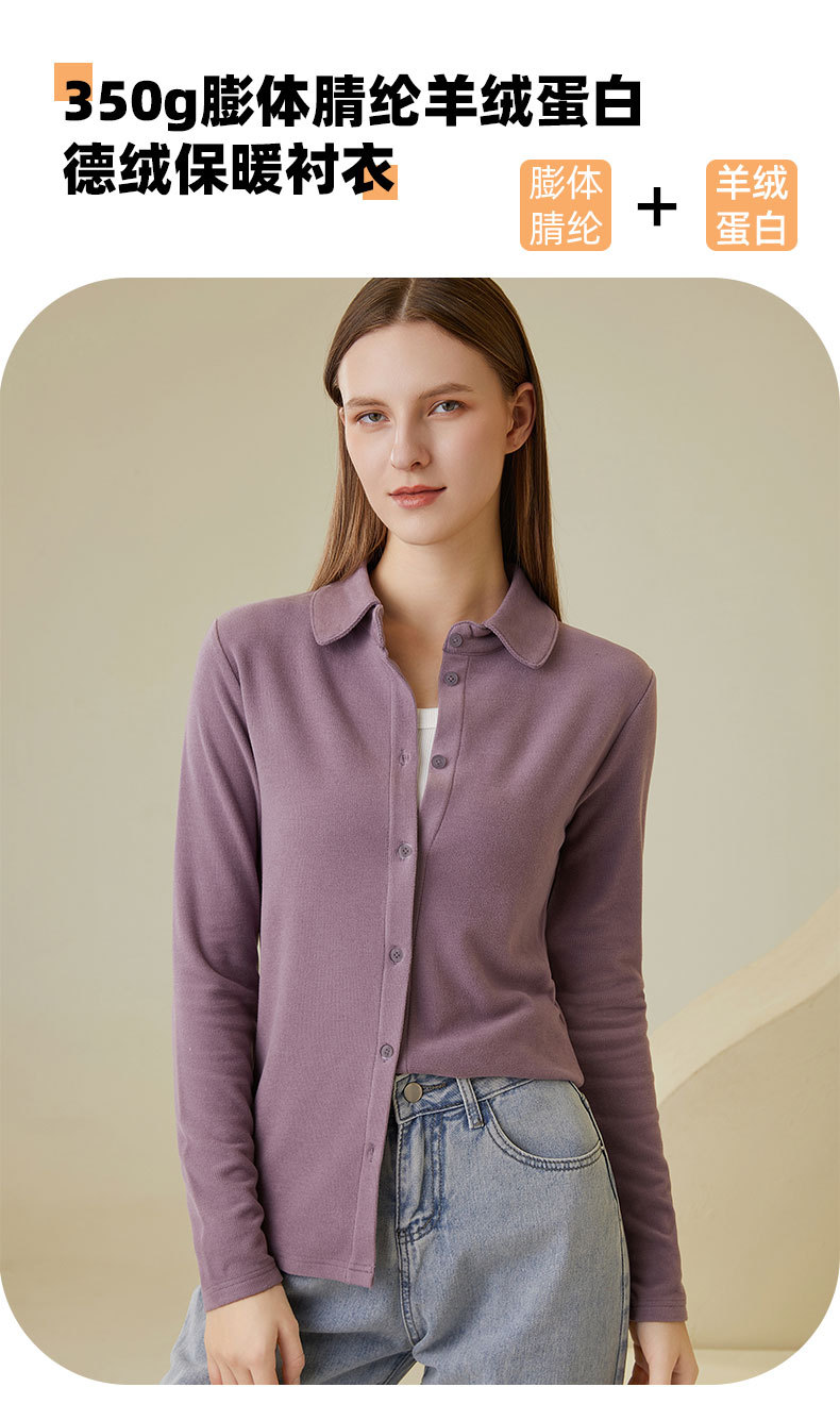 가을과 겨울 350 그램의 캐시미어 단백질 셔츠 긴 소매 이쑤시개 양면 독일 벨벳 여성의 단색 패션 L326스토어 가기