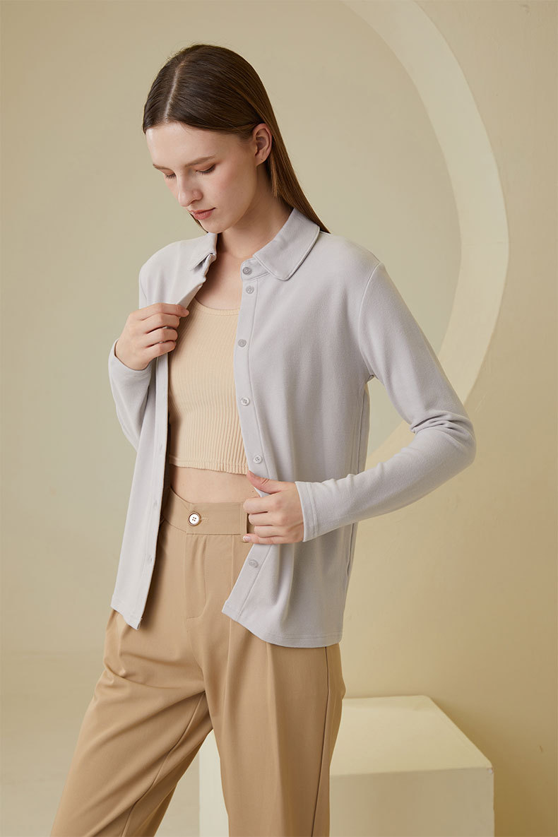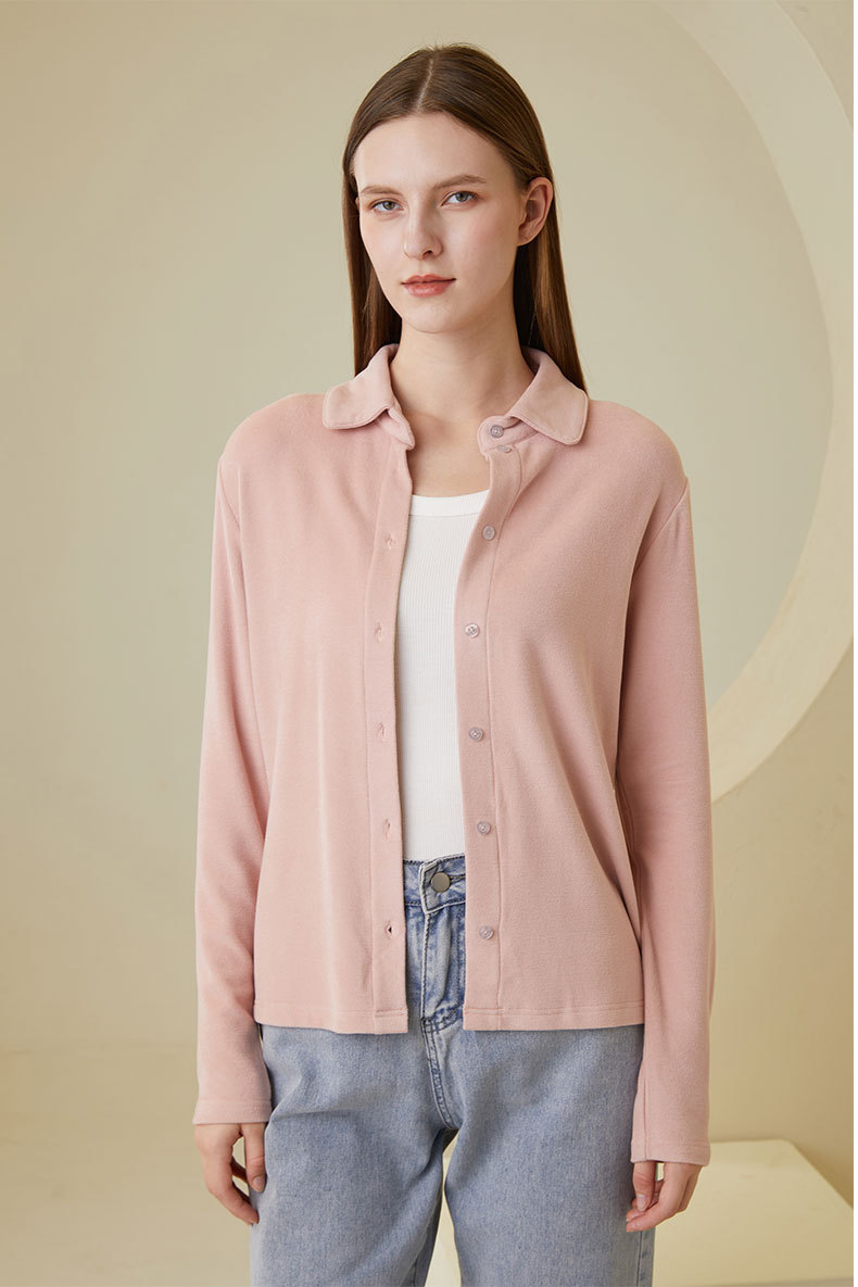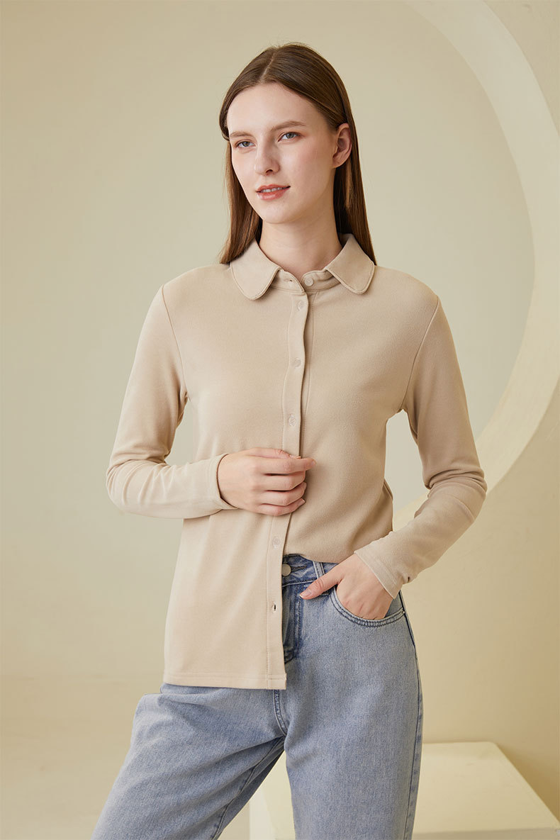 가을과 겨울 350 그램의 캐시미어 단백질 셔츠 긴 소매 이쑤시개 양면 독일 벨벳 여성의 단색 패션 L326