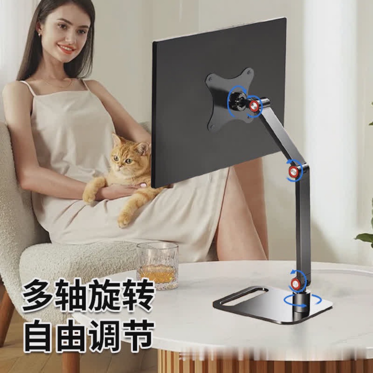 휴대용 디스플레이 서브 스크린 브래킷 플랫 베드 사이드 데스크탑 접이식 게으른 구멍이없는 16 인치 VESA 교수형 선반스토어 가기