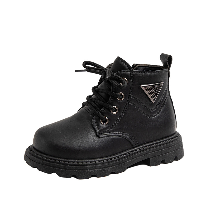 어린이 마틴 부츠 2024 가을 새 소년 사이드 지퍼 부츠 재고 걸스 올 매치 캐주얼 미드 배럴 싱글 레이어 부츠