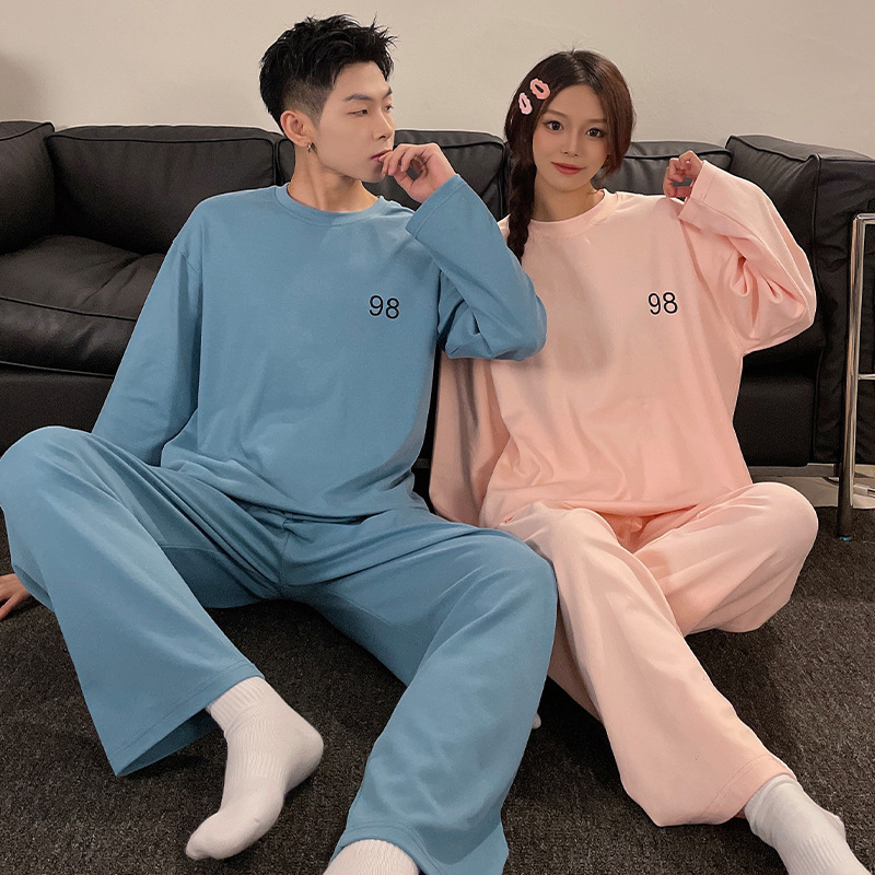 커플 잠옷 가을과 겨울 긴팔 만화 귀여운 달콤한 인터넷 붉은 바람 느슨한 캐주얼 남성과 여성의 홈 의류 세트스토어 가기