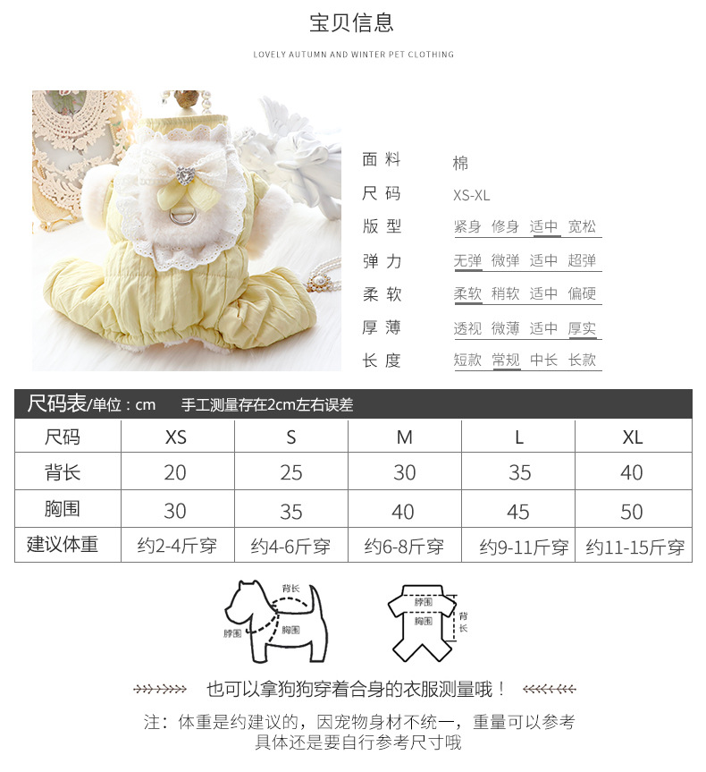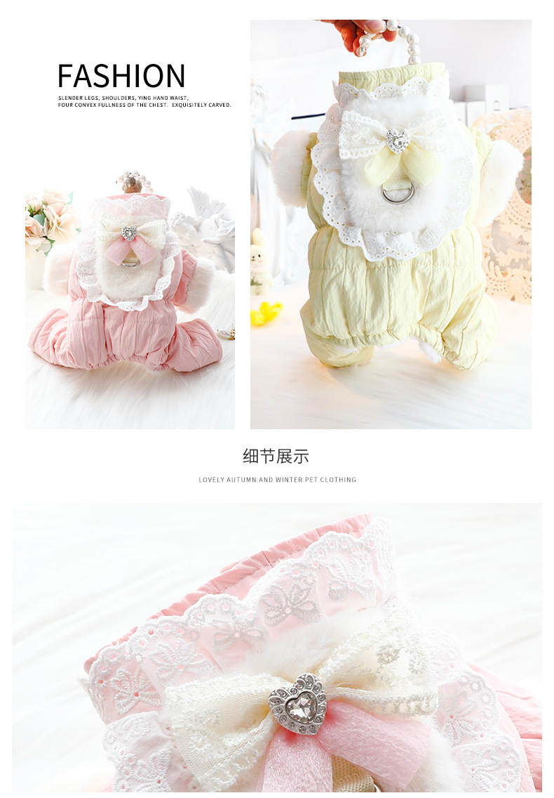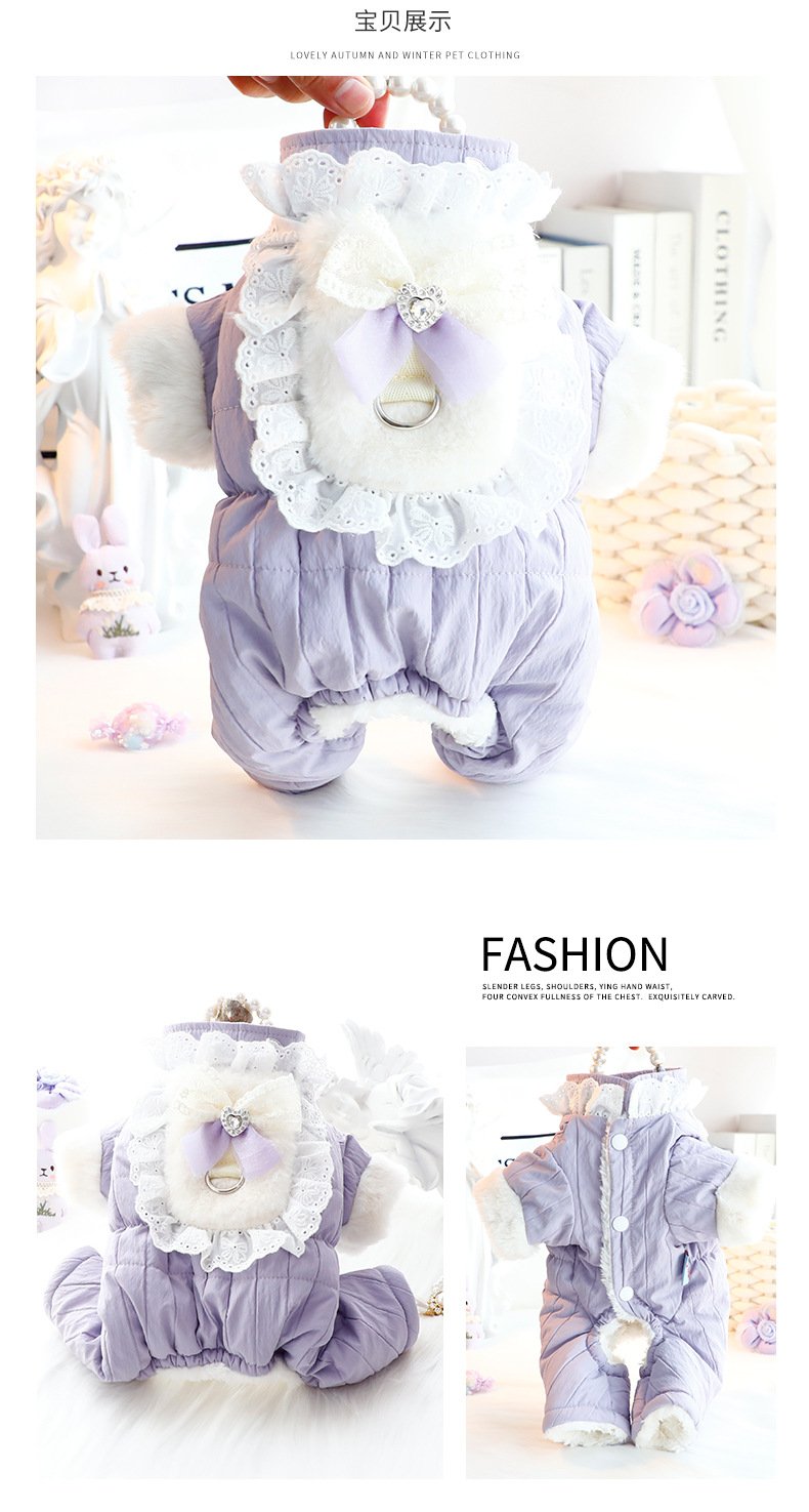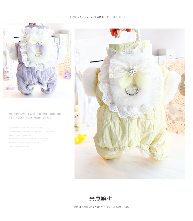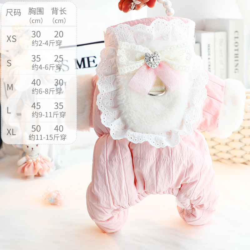 개 옷 가을과 겨울 두꺼운 네 다리 배꼽 가방 벨리 코튼 코트 달콤한 견인 작은 개 테디 애완 동물 6335