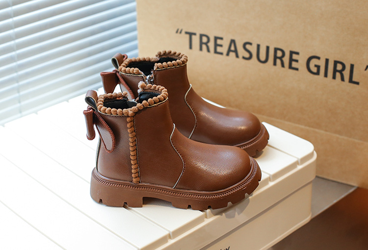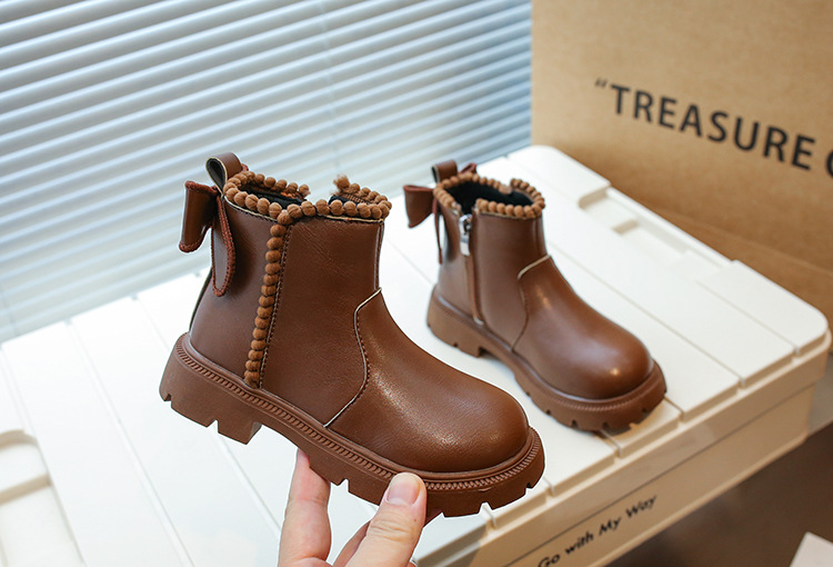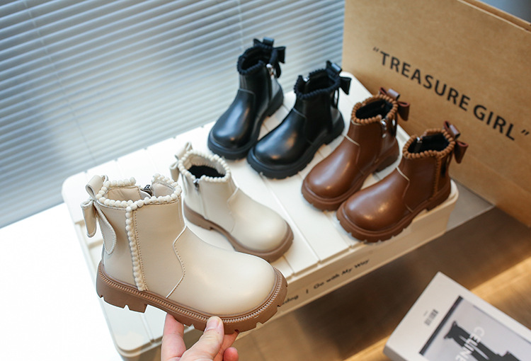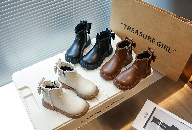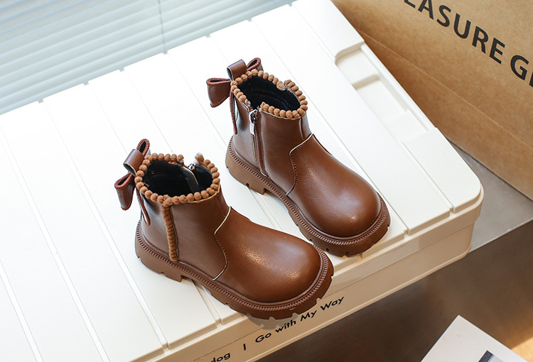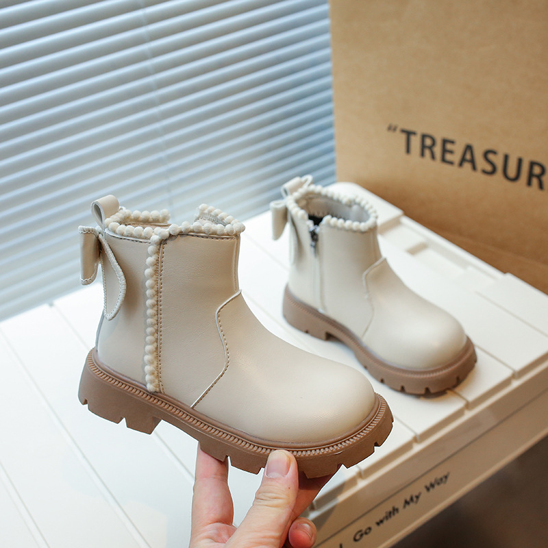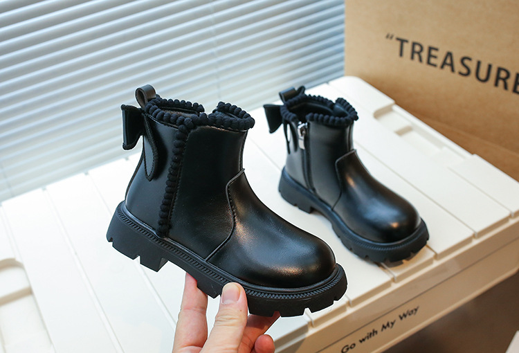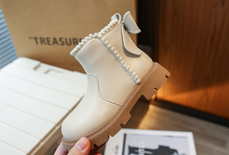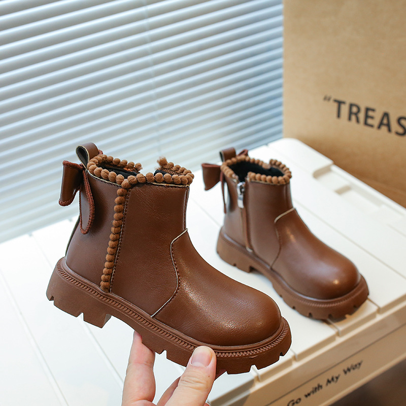 여아용 마틴 부츠 2025 가을 겨울 신상 한국 스타일 플러스 벨벳 보온 면 부츠 중대형 어린이용 리본 장식 쇼트 부츠스토어 가기