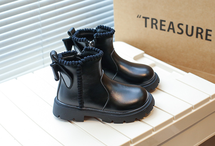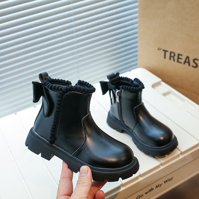 여아용 마틴 부츠 2025 가을 겨울 신상 한국 스타일 플러스 벨벳 보온 면 부츠 중대형 어린이용 리본 장식 쇼트 부츠