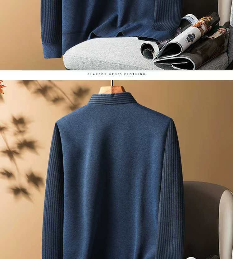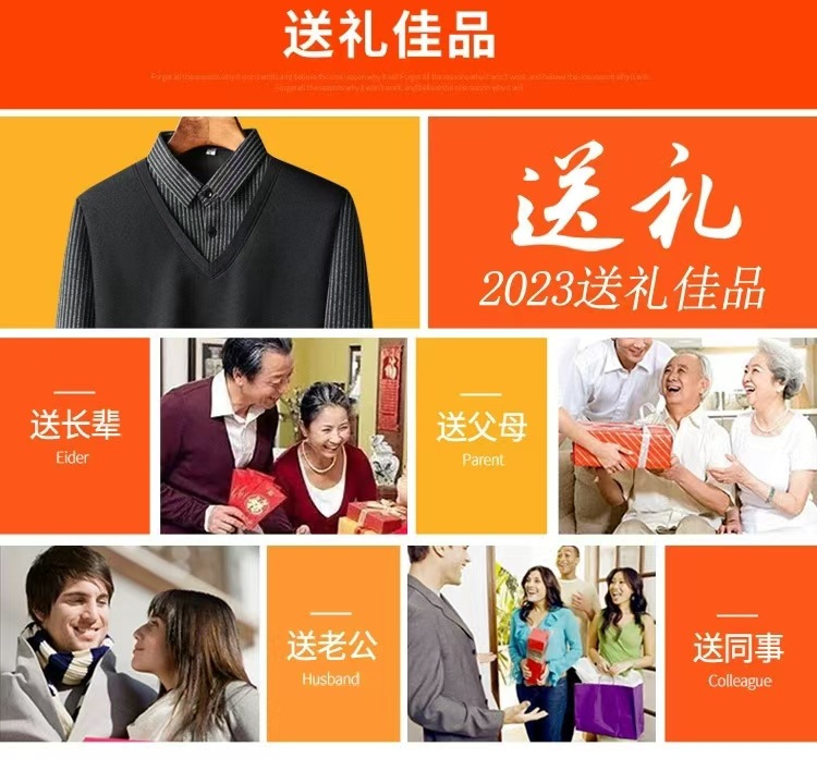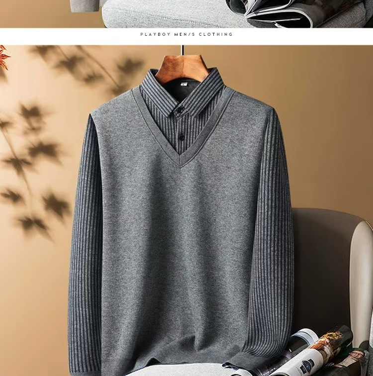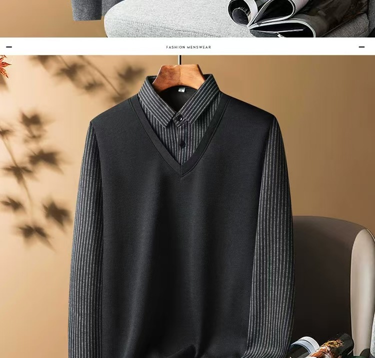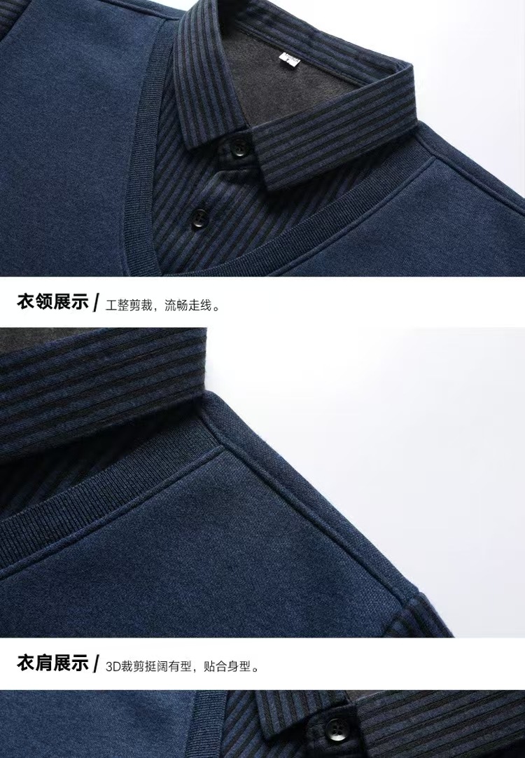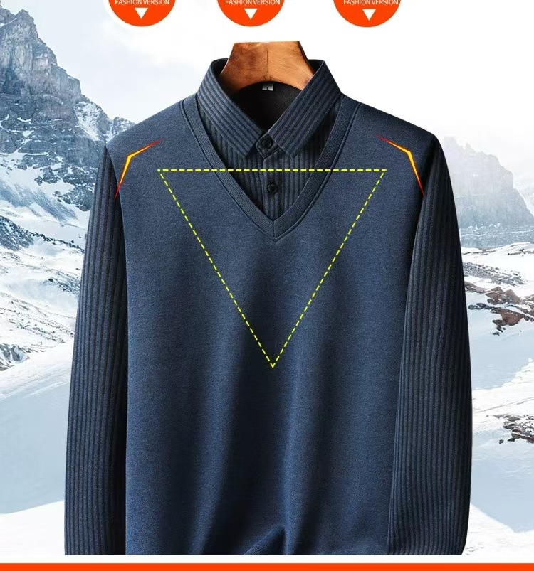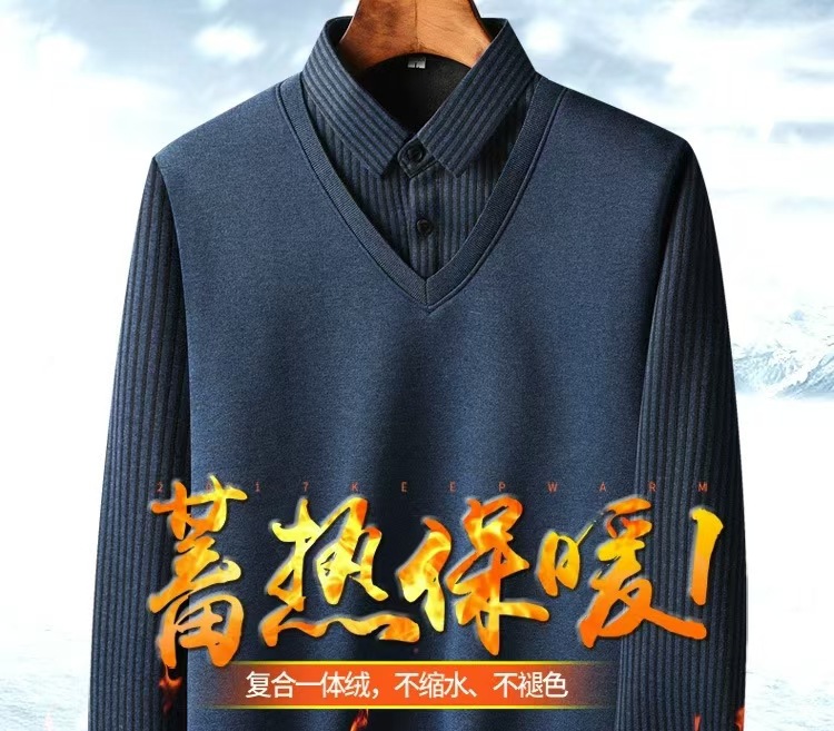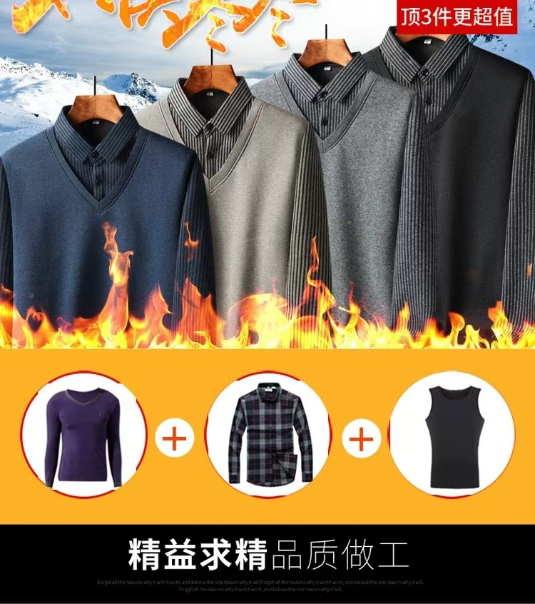 가을과 겨울 새로운 가짜 투피스 셔츠 남자의 따뜻한 탑 원피스 기모 두꺼운 중년 및 노인 니트웨어 스웨터스토어 가기