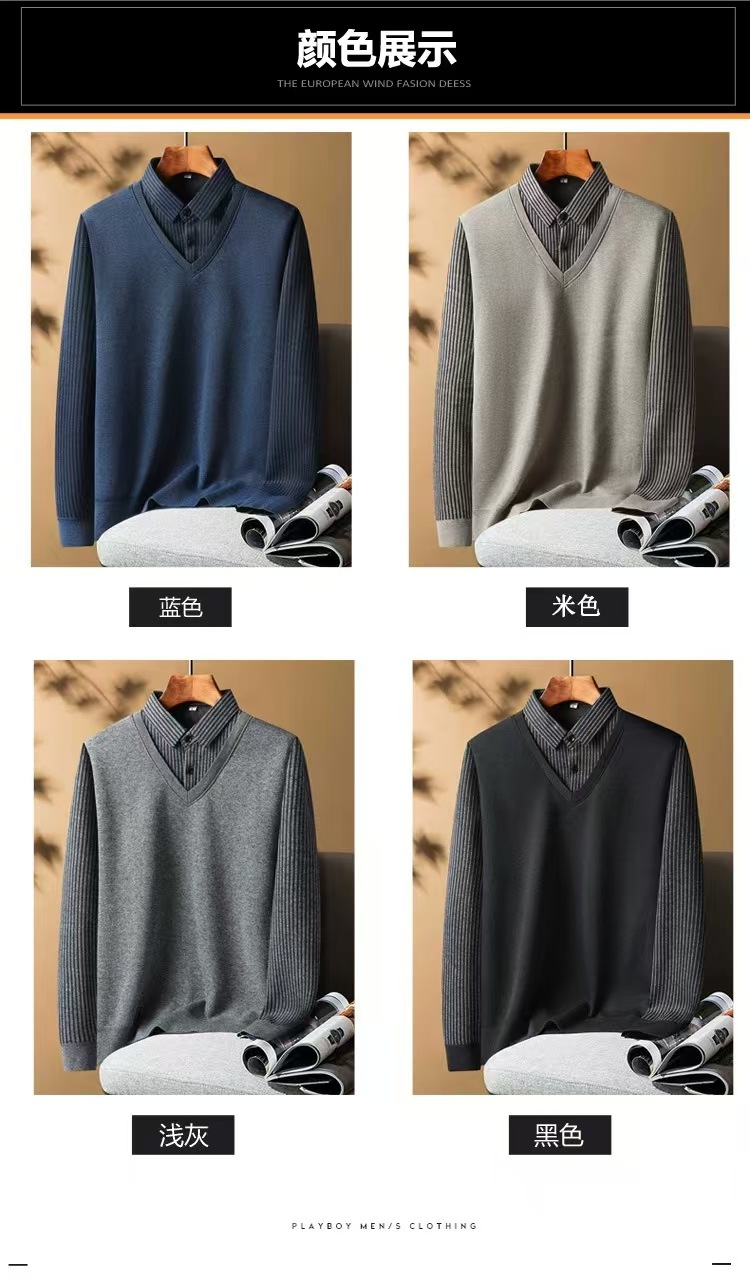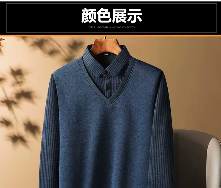 가을과 겨울 새로운 가짜 투피스 셔츠 남자의 따뜻한 탑 원피스 기모 두꺼운 중년 및 노인 니트웨어 스웨터