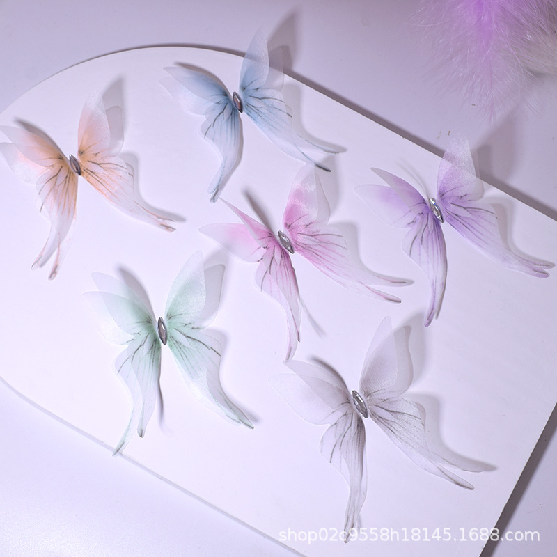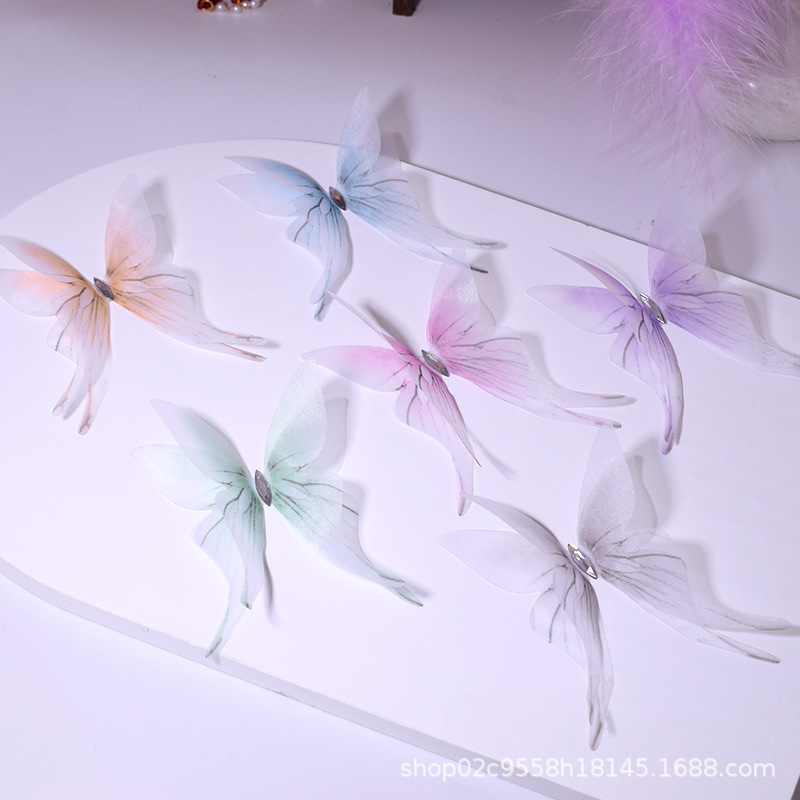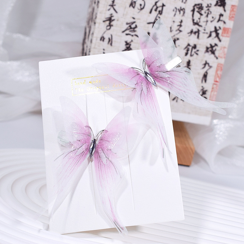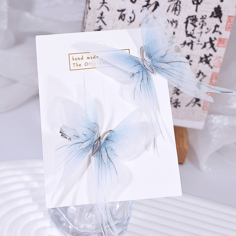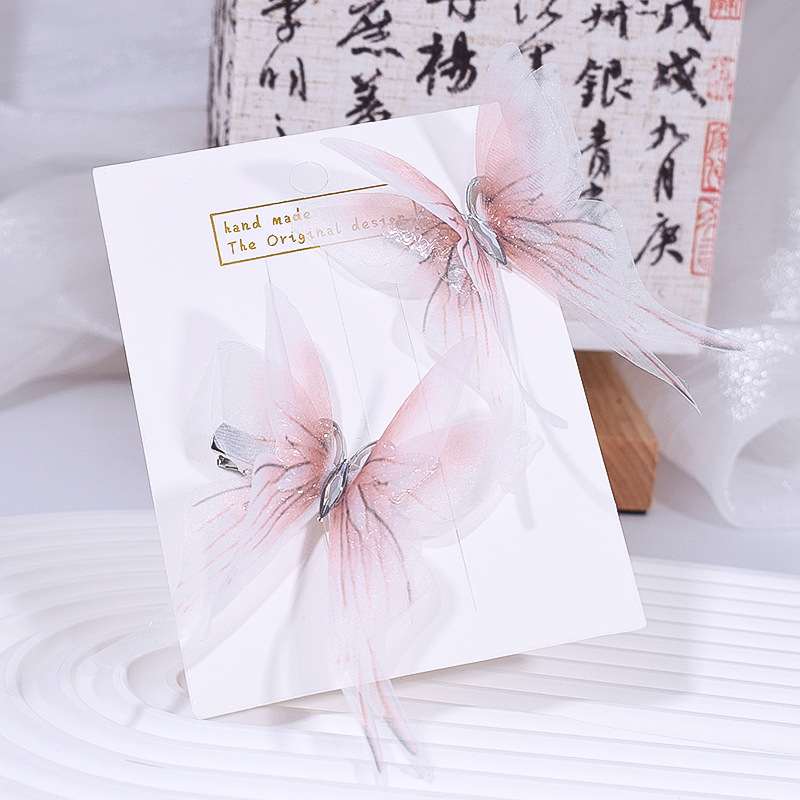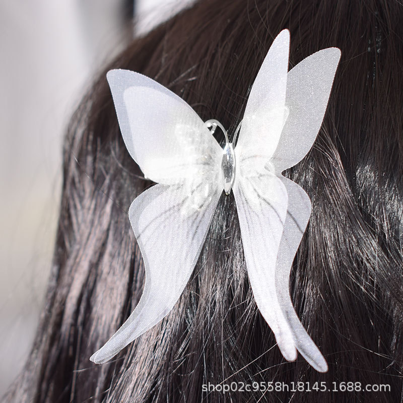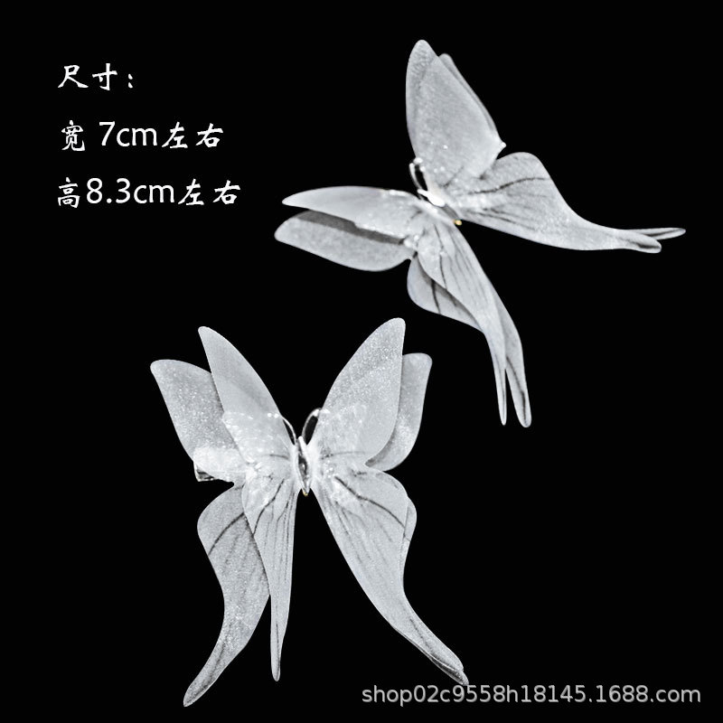 7cm 3 차원 이중 흑백 실크 모래 나비 머리핀 여성 시뮬레이션 튤 나비 골동품 한후 머리 장식 배치에서 1