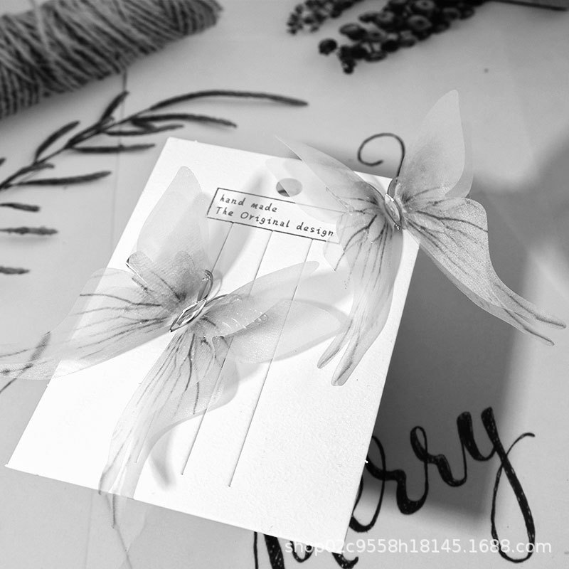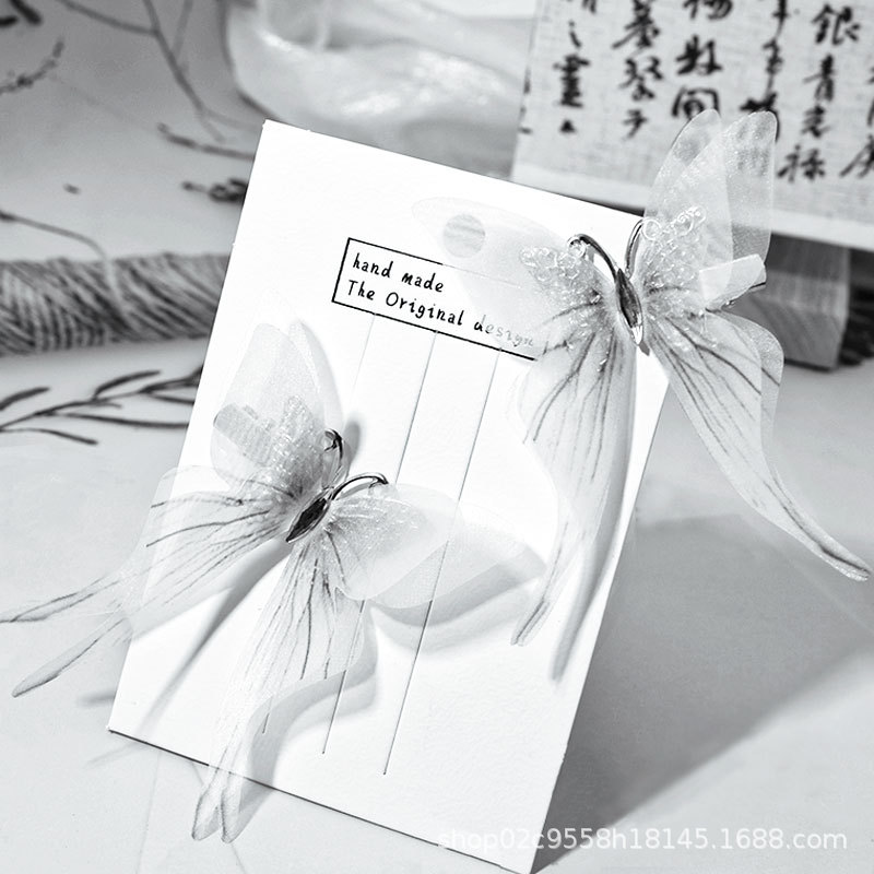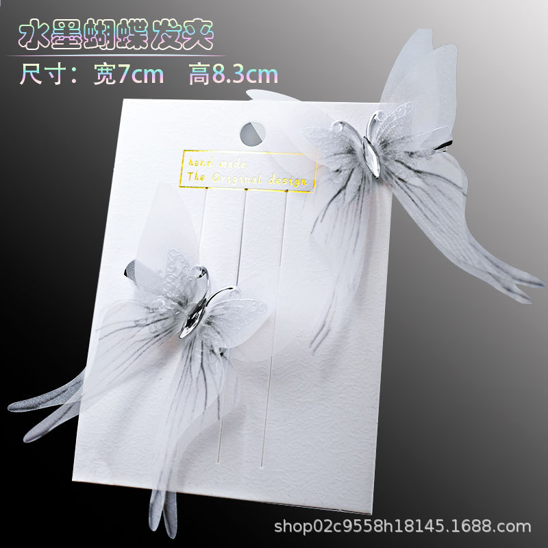 7cm 3 차원 이중 흑백 실크 모래 나비 머리핀 여성 시뮬레이션 튤 나비 골동품 한후 머리 장식 배치에서 1스토어 가기