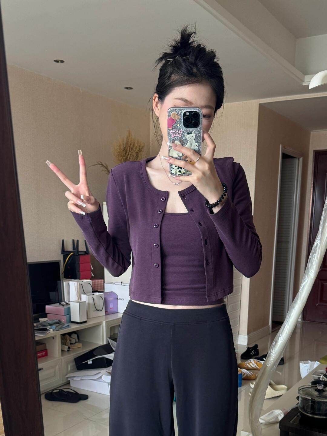 2024 이른 가을 유행 긴 소매 카디건 캐주얼 탑과 새로운 간단한 캐주얼 스파이스 소녀 조끼스토어 가기