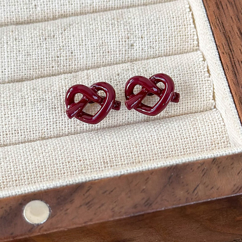 Ankora Red Love Bow 귀걸이 여성 레트로 틈새 2024 새로운 폭발 하이 엔드 센스 작은 귀걸이스토어 가기