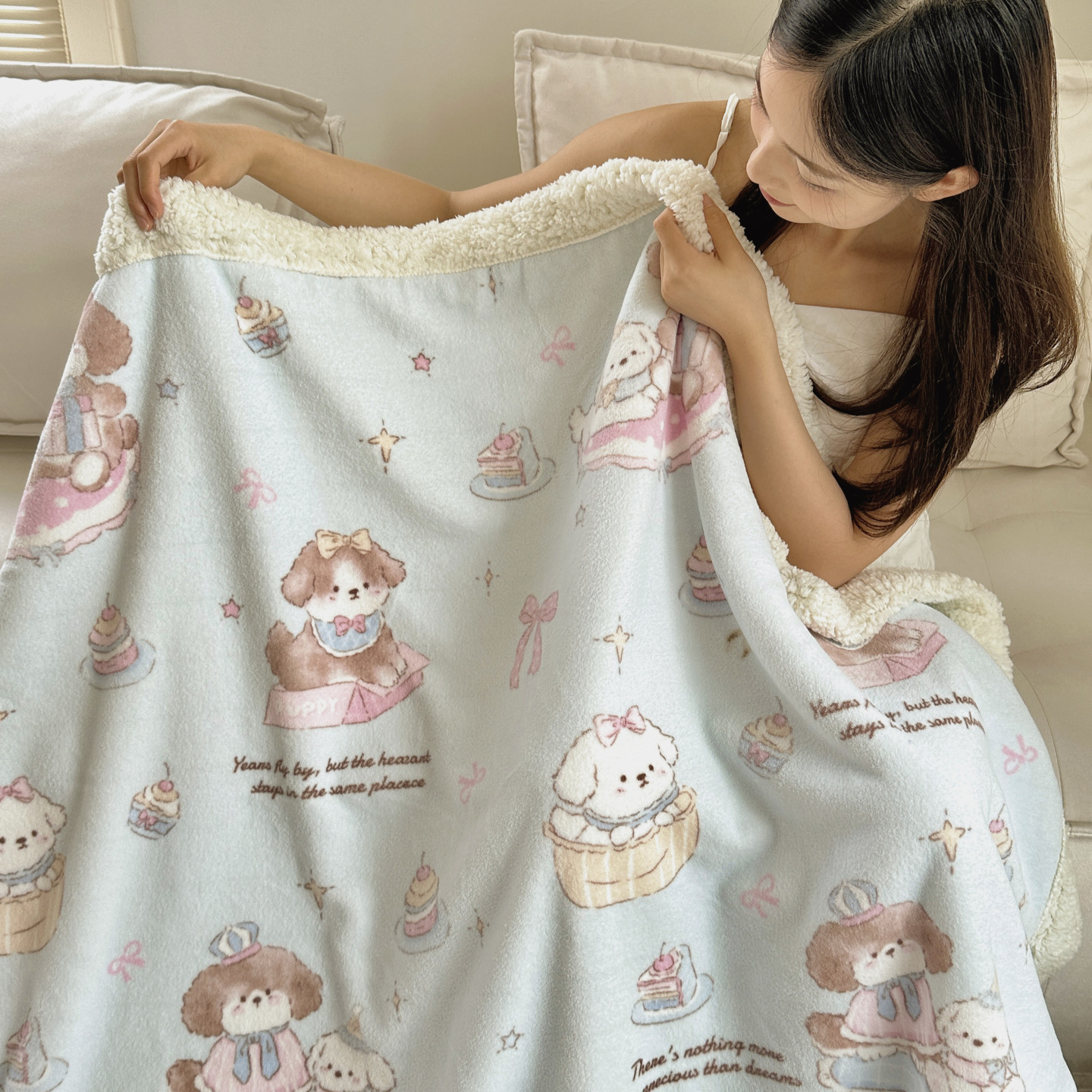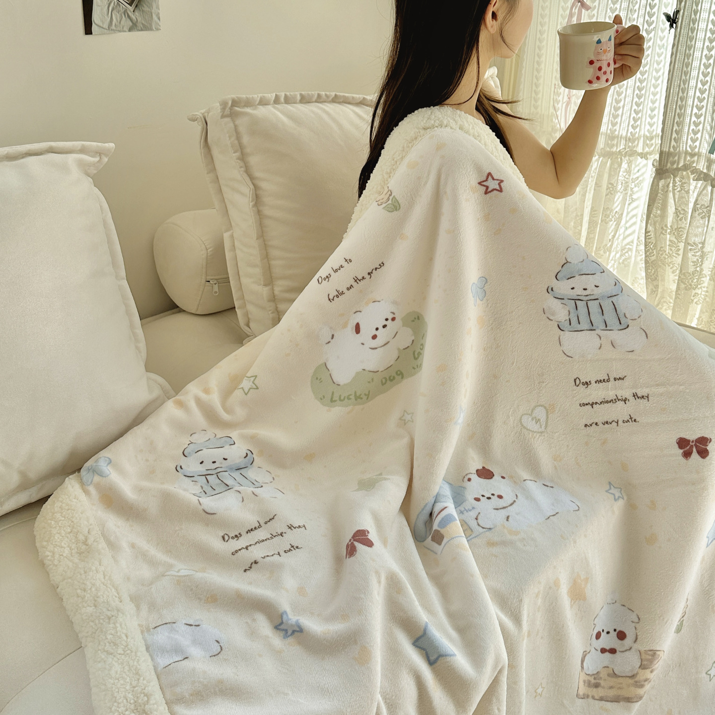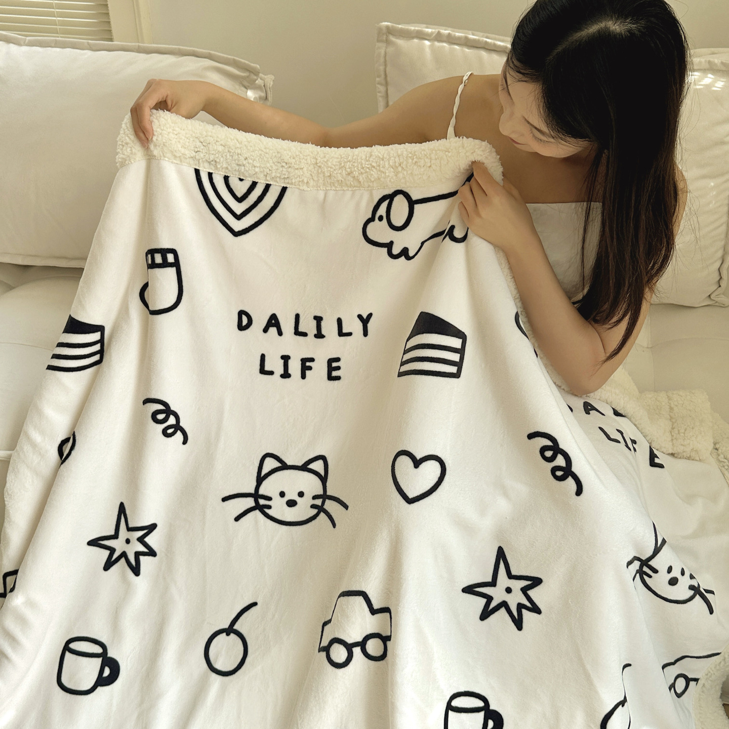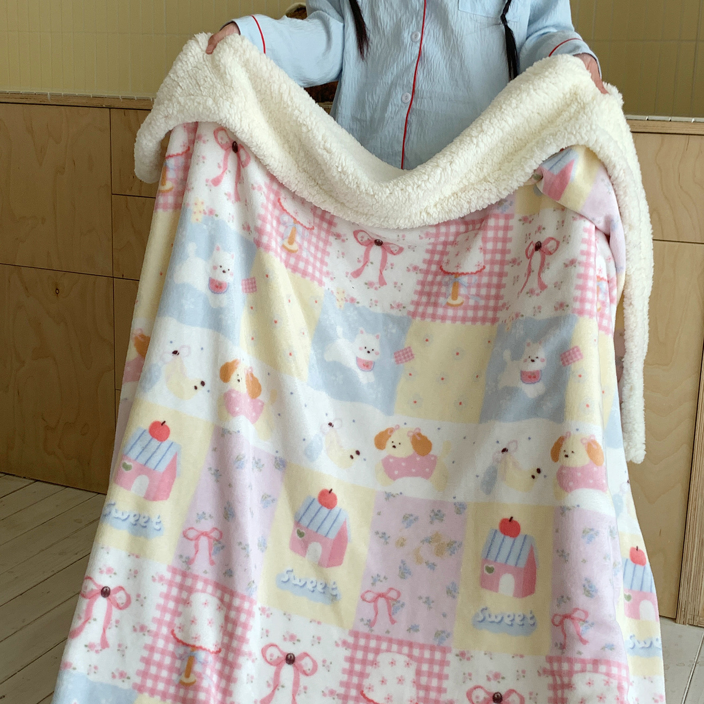 인 스타일 만화 두꺼운 우유 양털 담요 겨울 양면 따뜻한 산호 양털 양털 점심 식사 담요 소파 담요