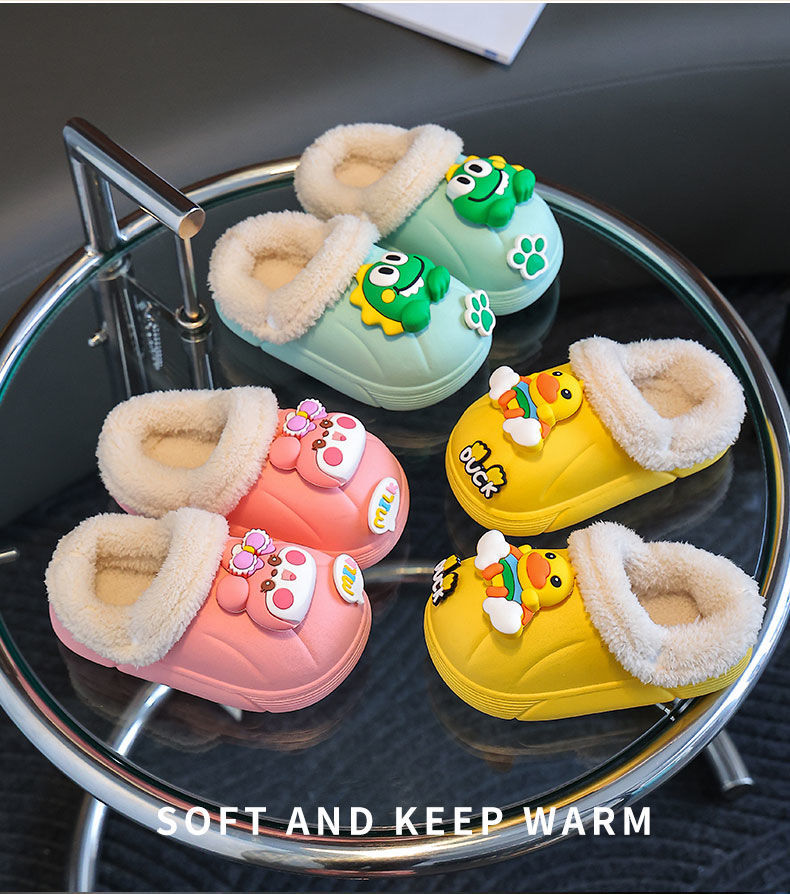 실내 어린이 면화 슬리퍼 도매 겨울 가정용 미끄럼 방지 이동식 플러스 벨벳 따뜻한 가을, 겨울 아기 면화 커버