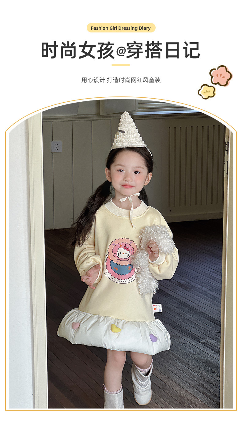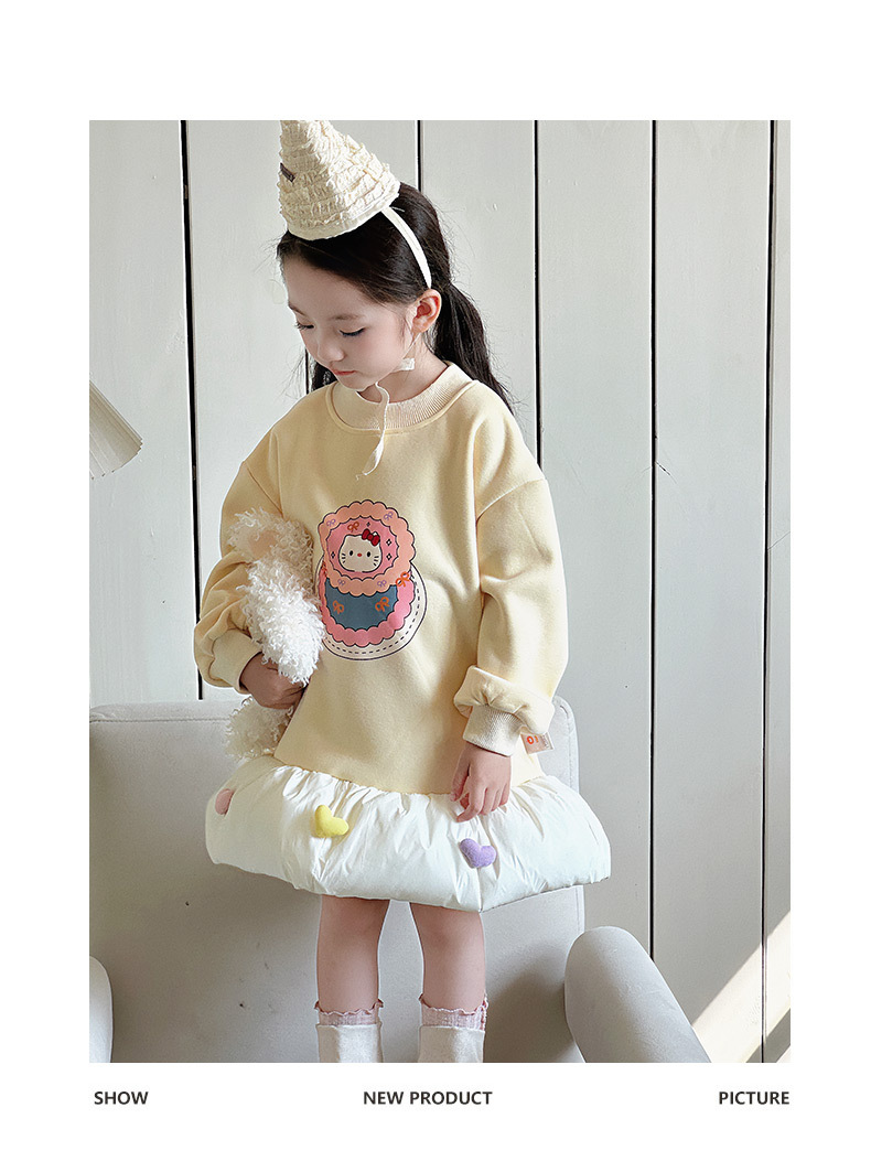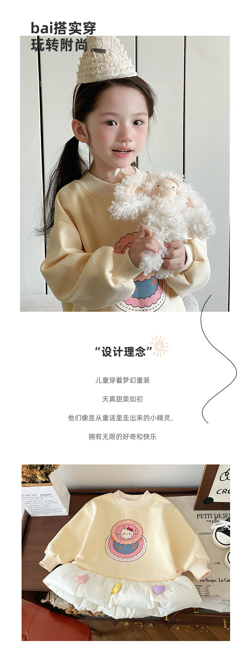 어린이 기모 스웨터 스커트 2024 가을과 겨울 새로운 한국 만화 소녀 스웨터 스커트 어린이 따뜻한 코트 조수스토어 가기