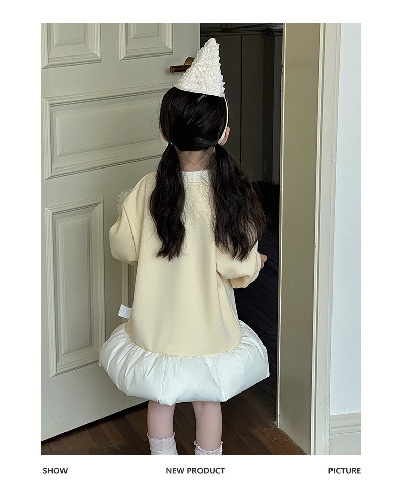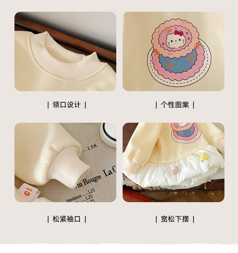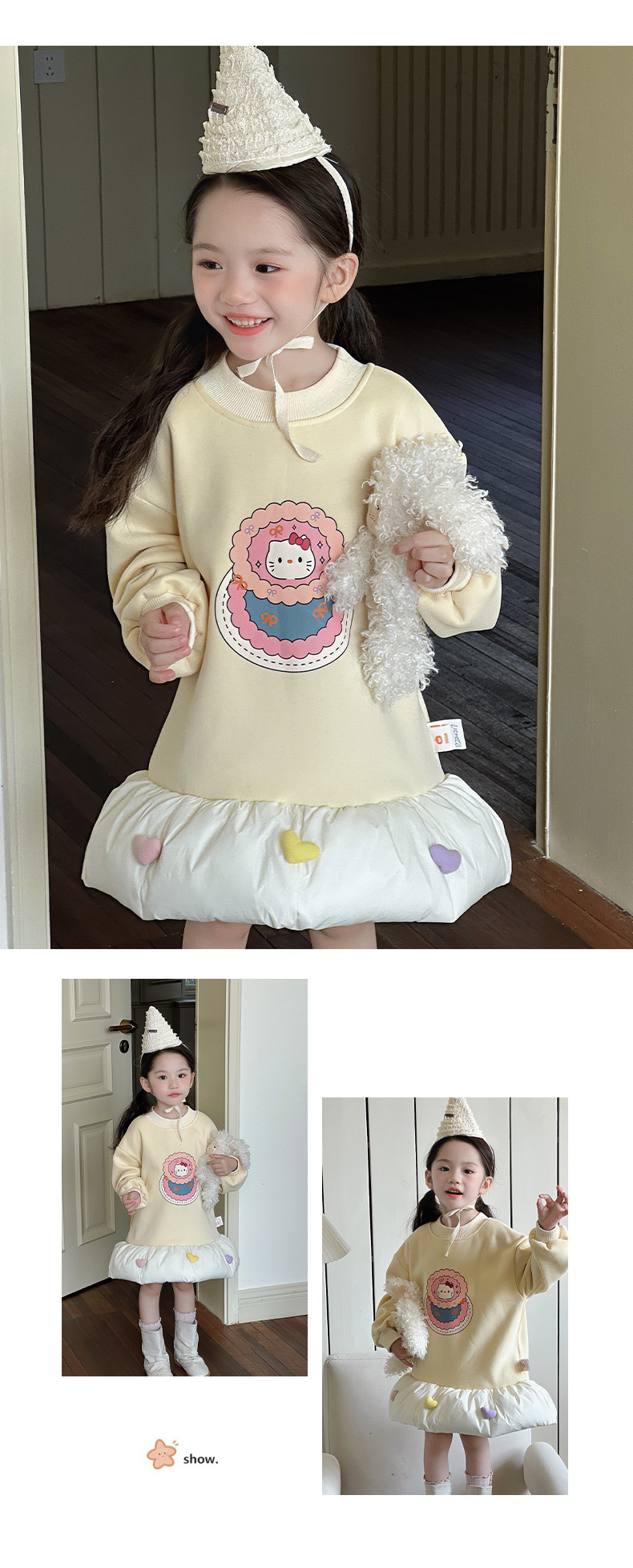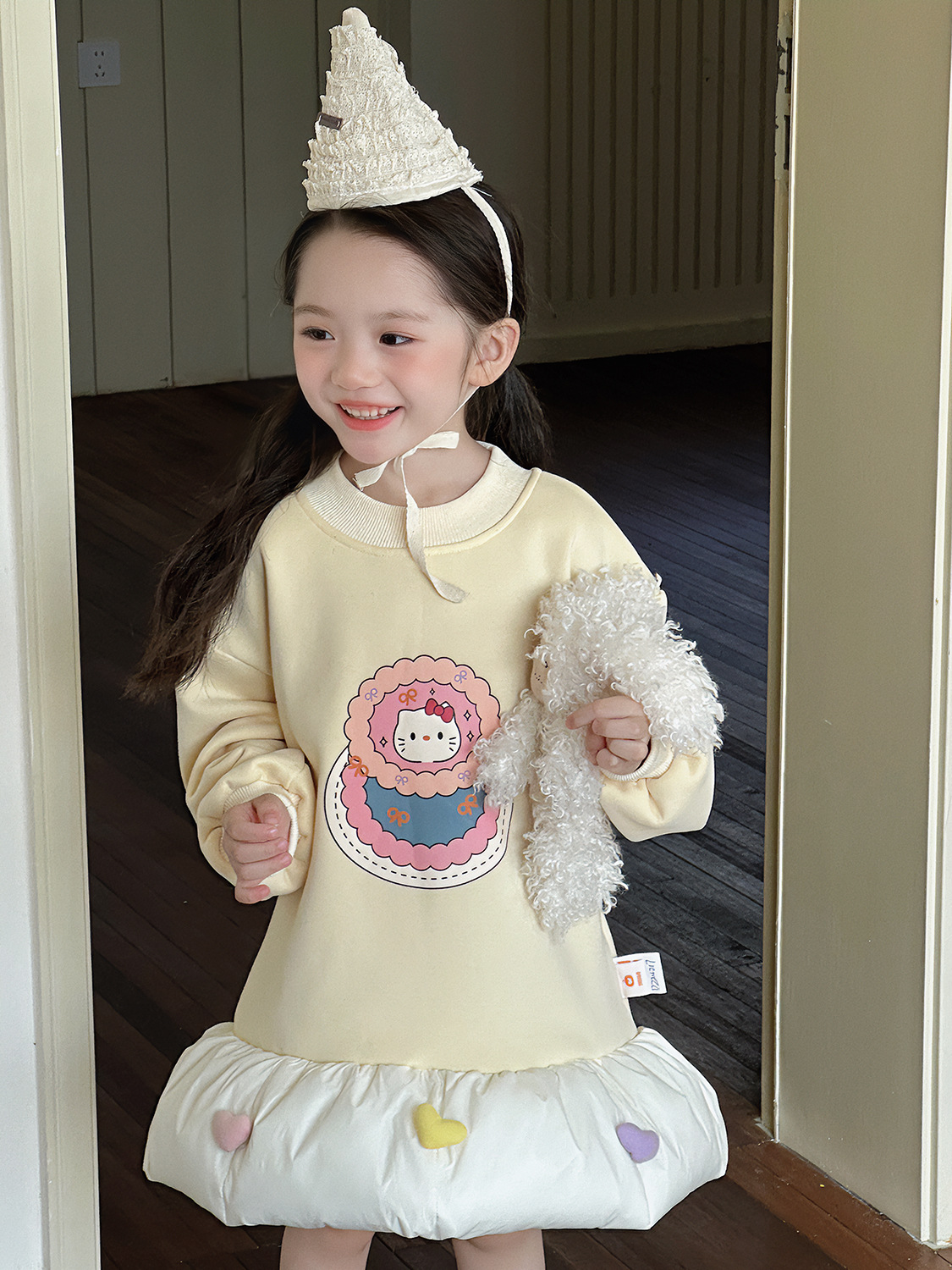어린이 기모 스웨터 스커트 2024 가을과 겨울 새로운 한국 만화 소녀 스웨터 스커트 어린이 따뜻한 코트 조수스토어 가기