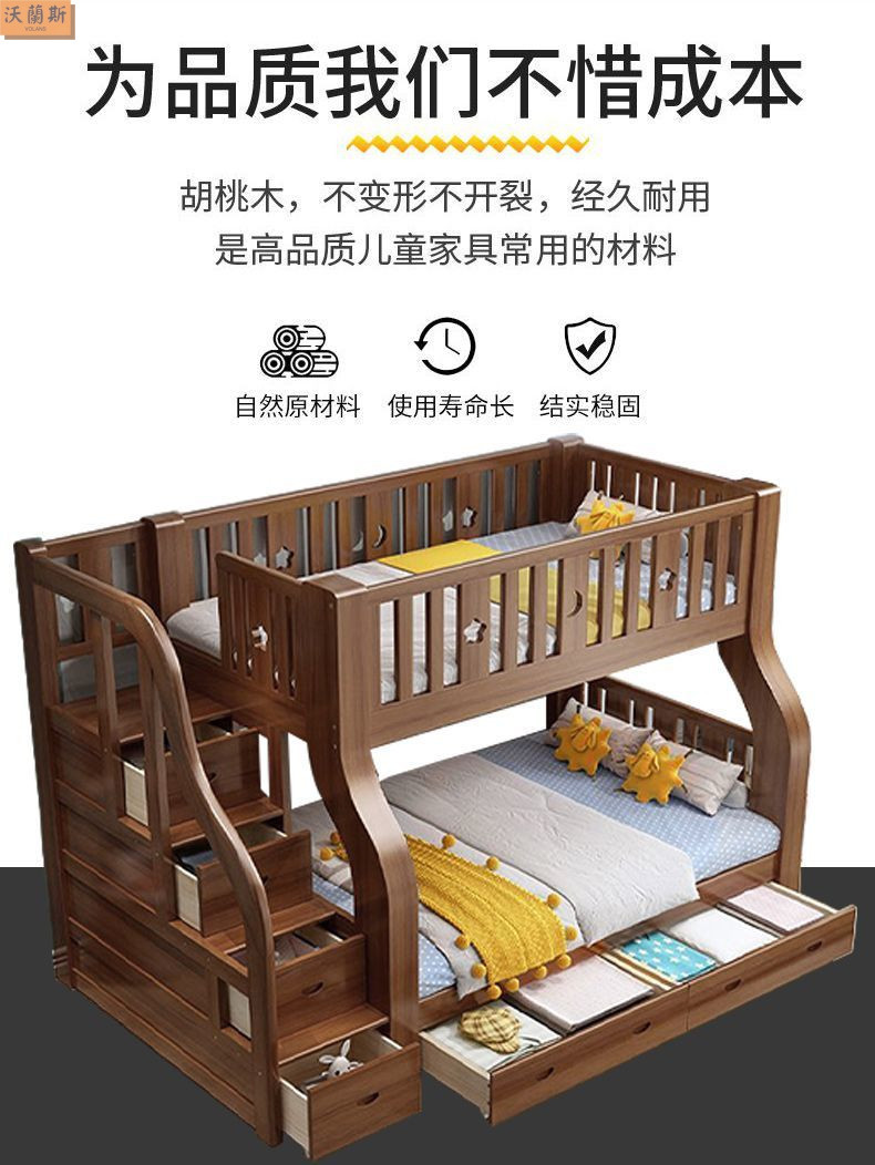 단단한 나무 침대 호두 침대 두꺼운 침대 2 층 높은 낮은 침대 두꺼운 저장 다기능 침대스토어 가기
