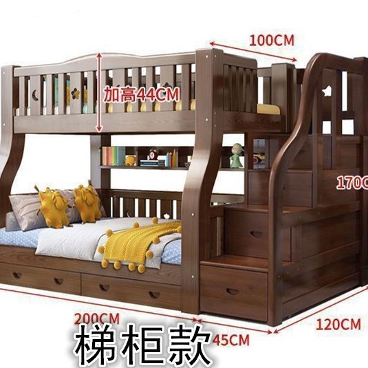 단단한 나무 침대 호두 침대 두꺼운 침대 2 층 높은 낮은 침대 두꺼운 저장 다기능 침대