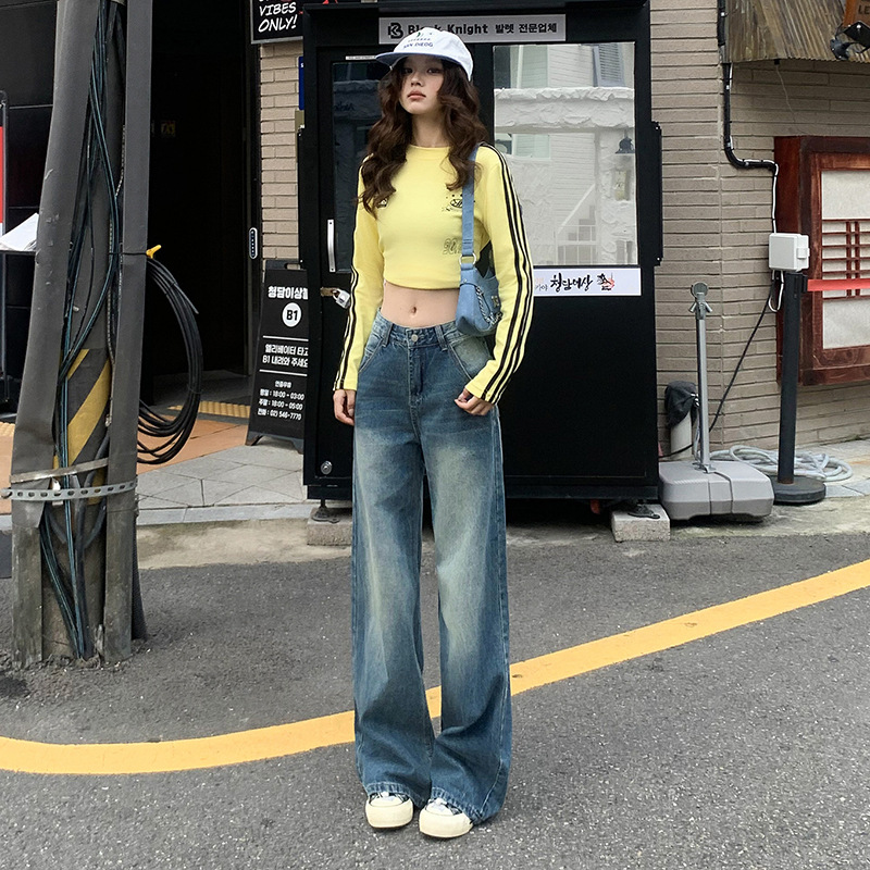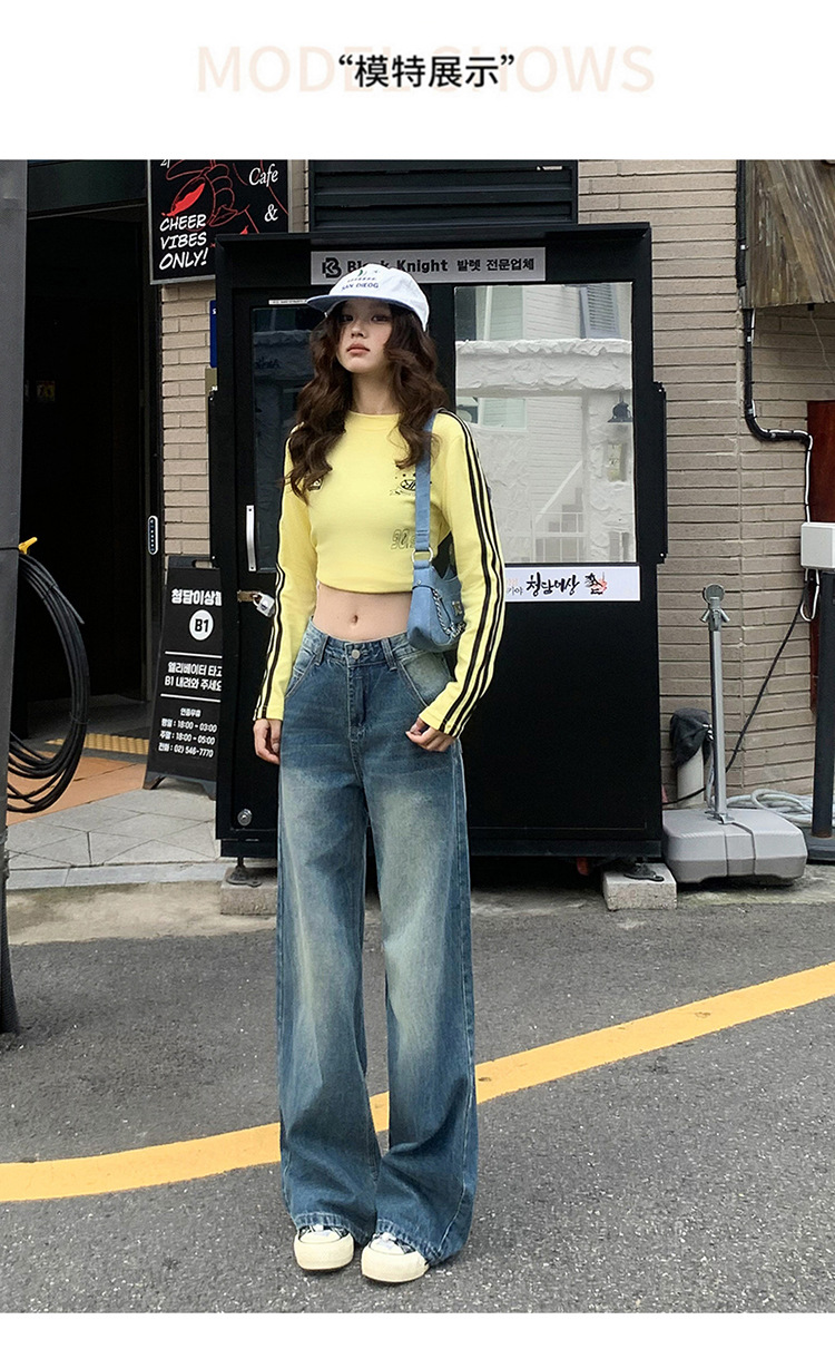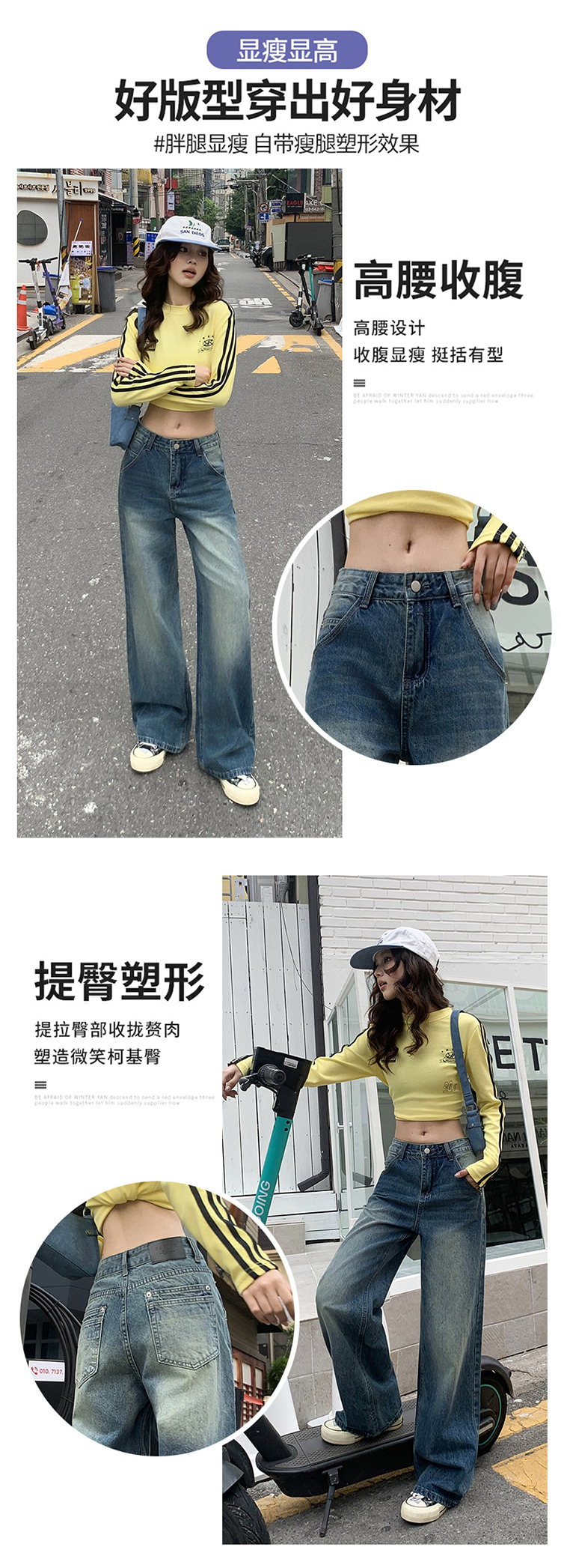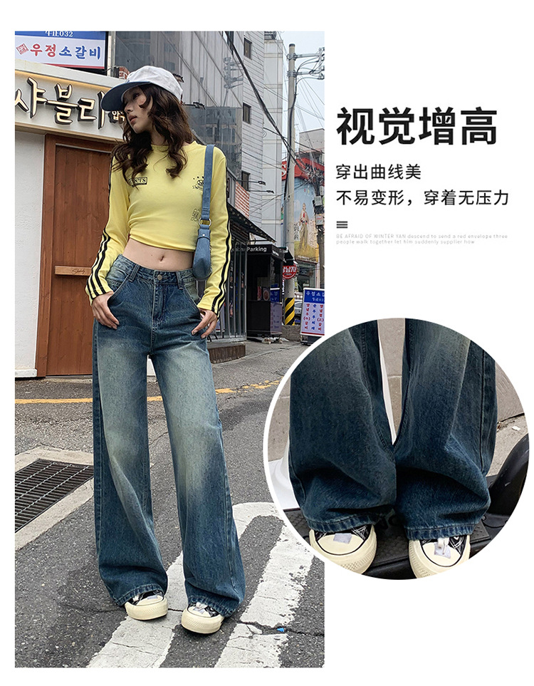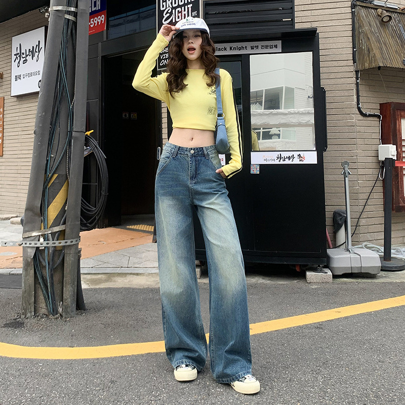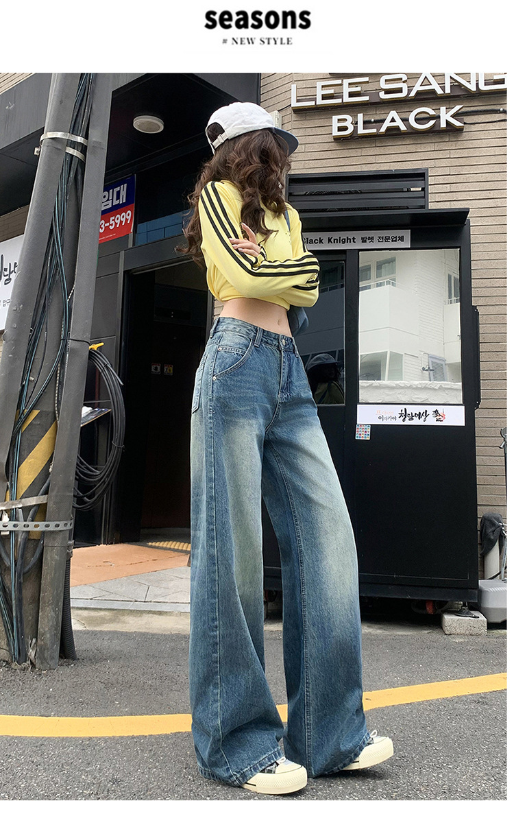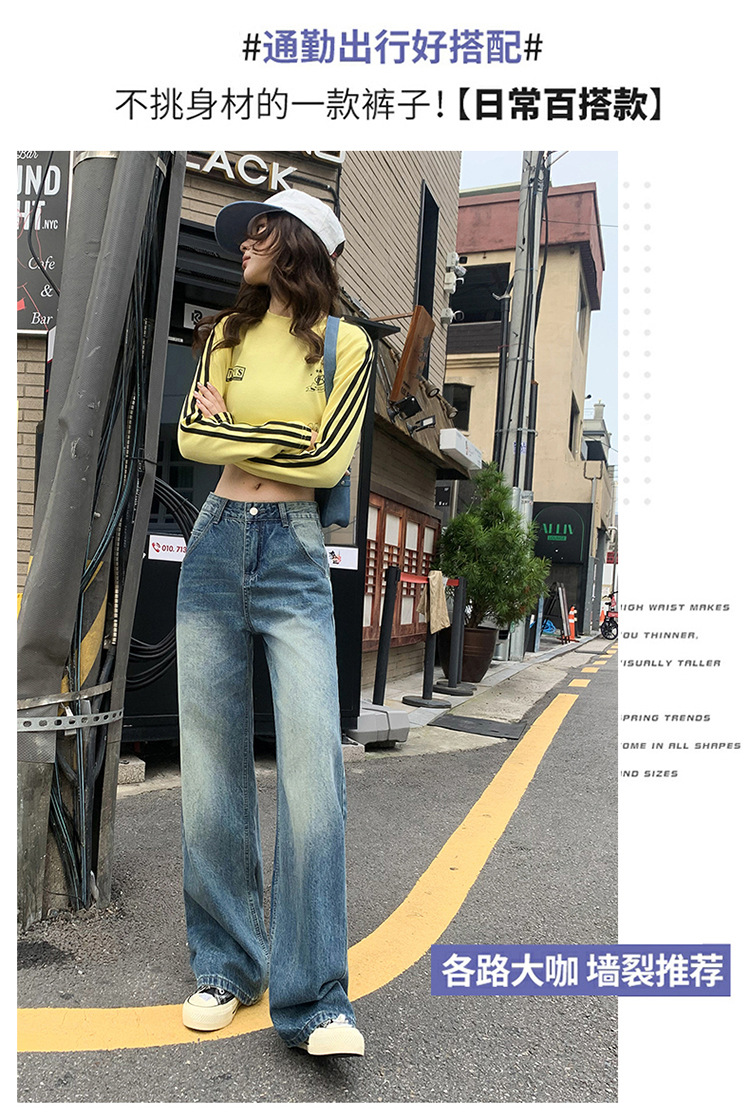 레트로 워싱 데님 팬츠 여성용 2025 봄 가을 신상 하이웨이스트 슬림핏 와이드 팬츠스토어 가기