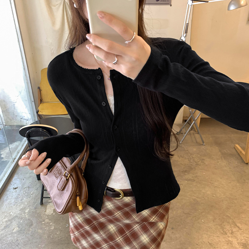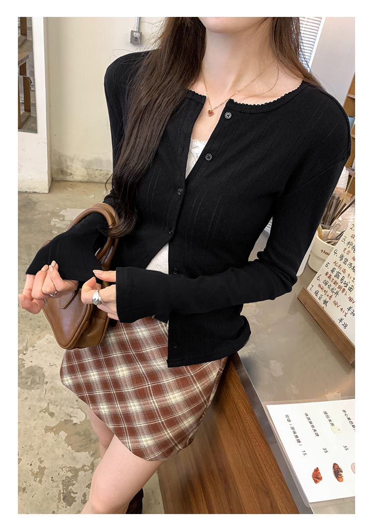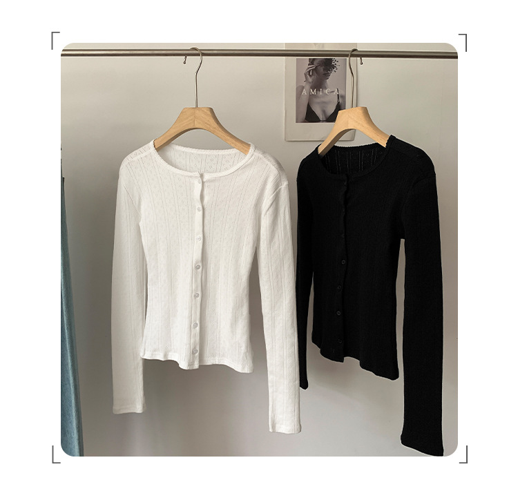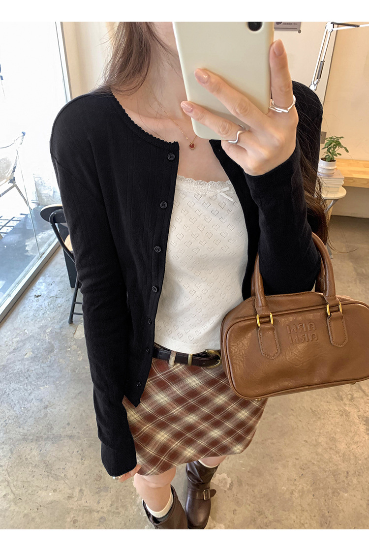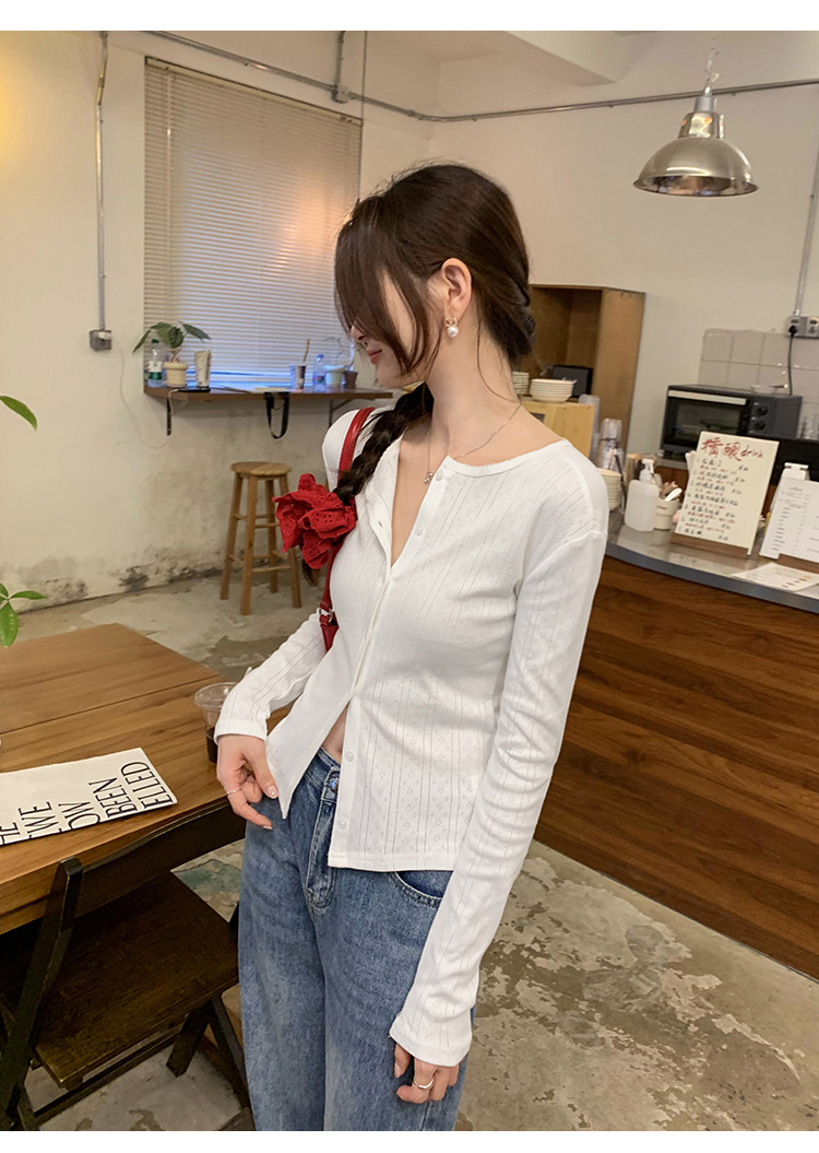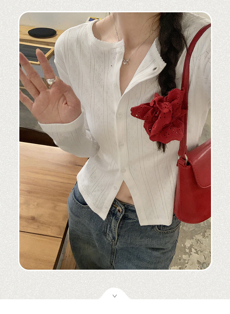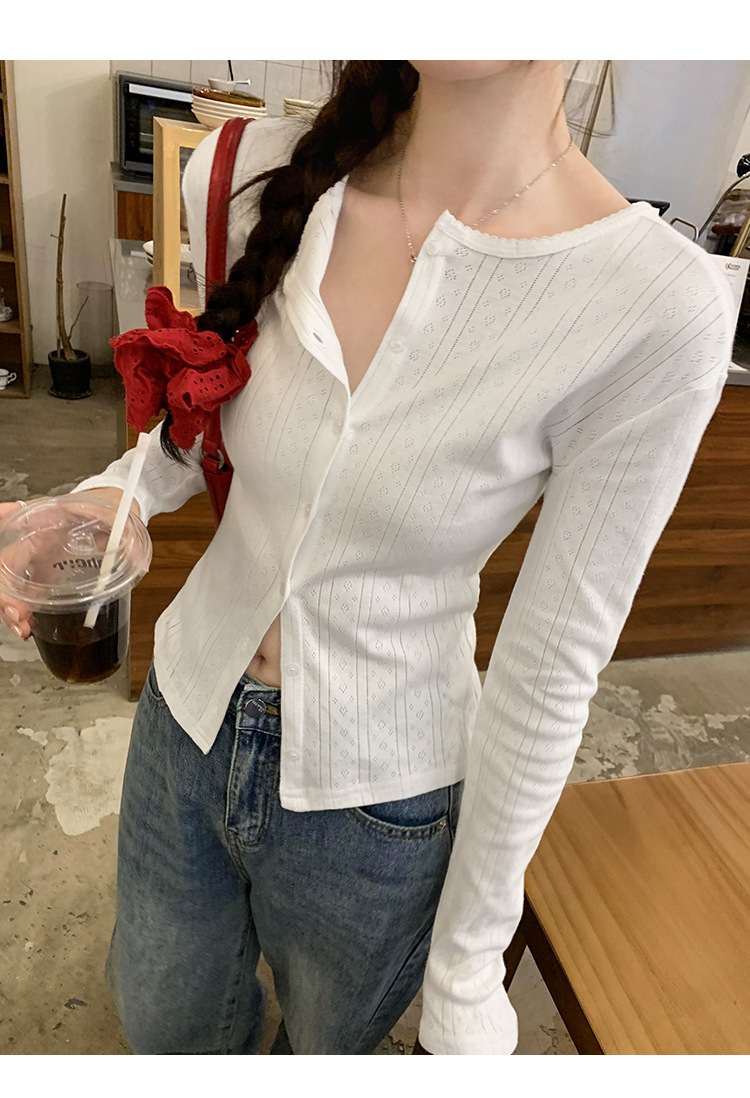 프랑스 달콤한 자카드 할로우 긴 소매 니트 카디건 여자 2024 가을 새로운 독특한 아름다운 올 매치 탑스토어 가기