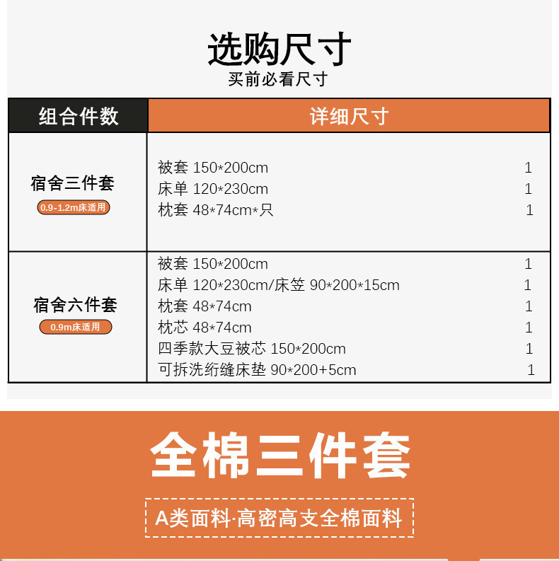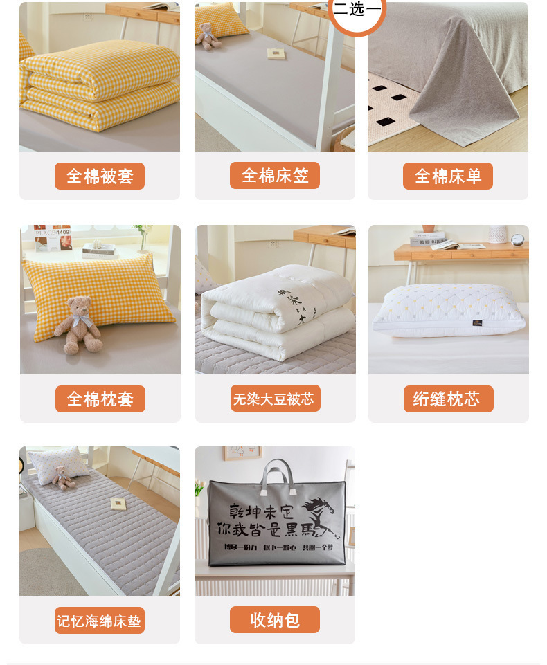 全棉学生宿舍六件套寝室上下铺单人床被套床单床笠六件套