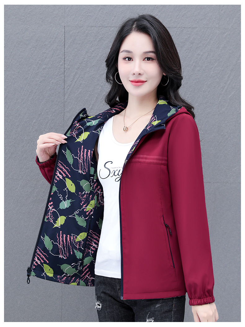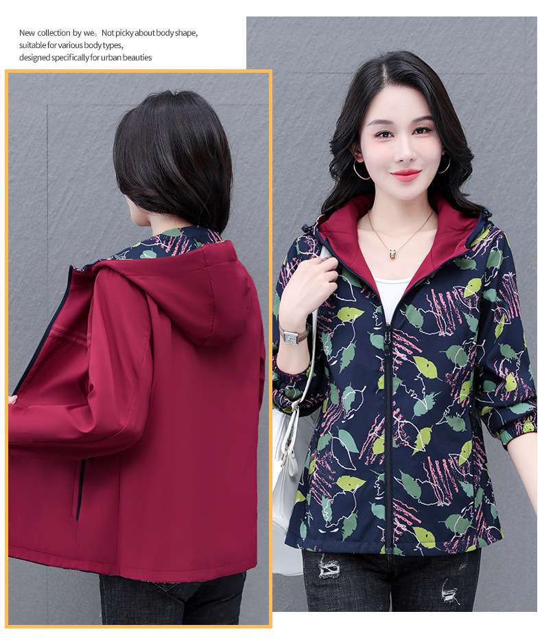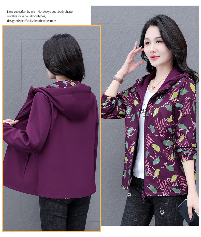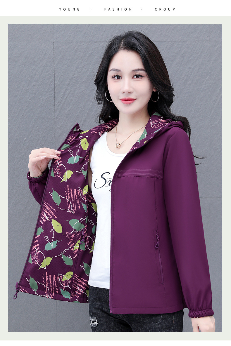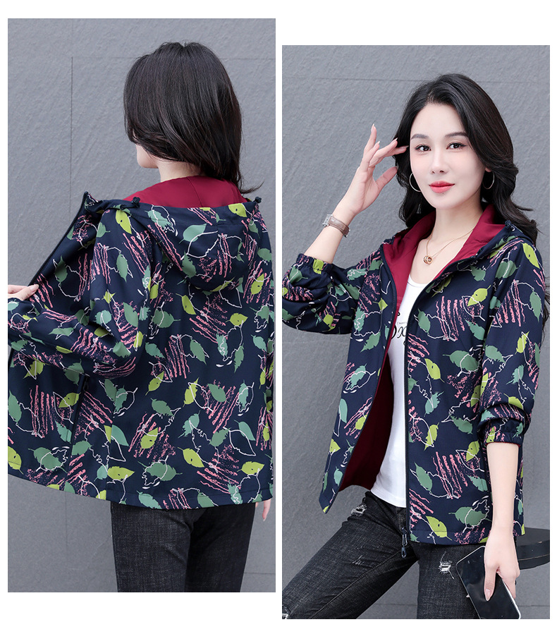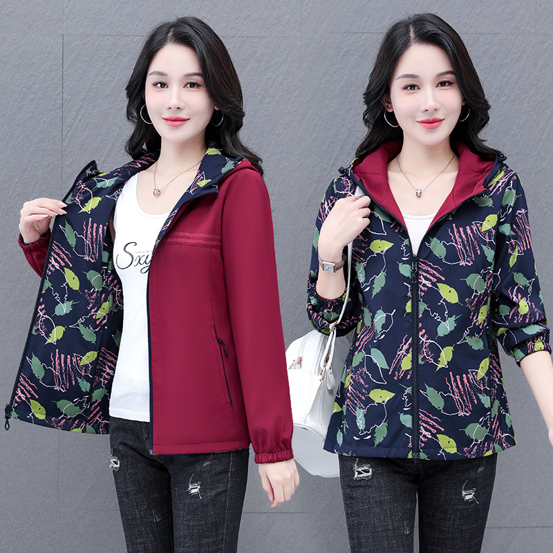 양면 재킷 여성용 봄 가을 얇은 모델 2025 신상 중년 엄마 패션 나이 감소 양면 후드 프린트 코트스토어 가기