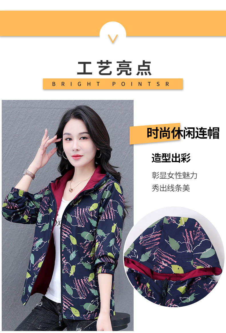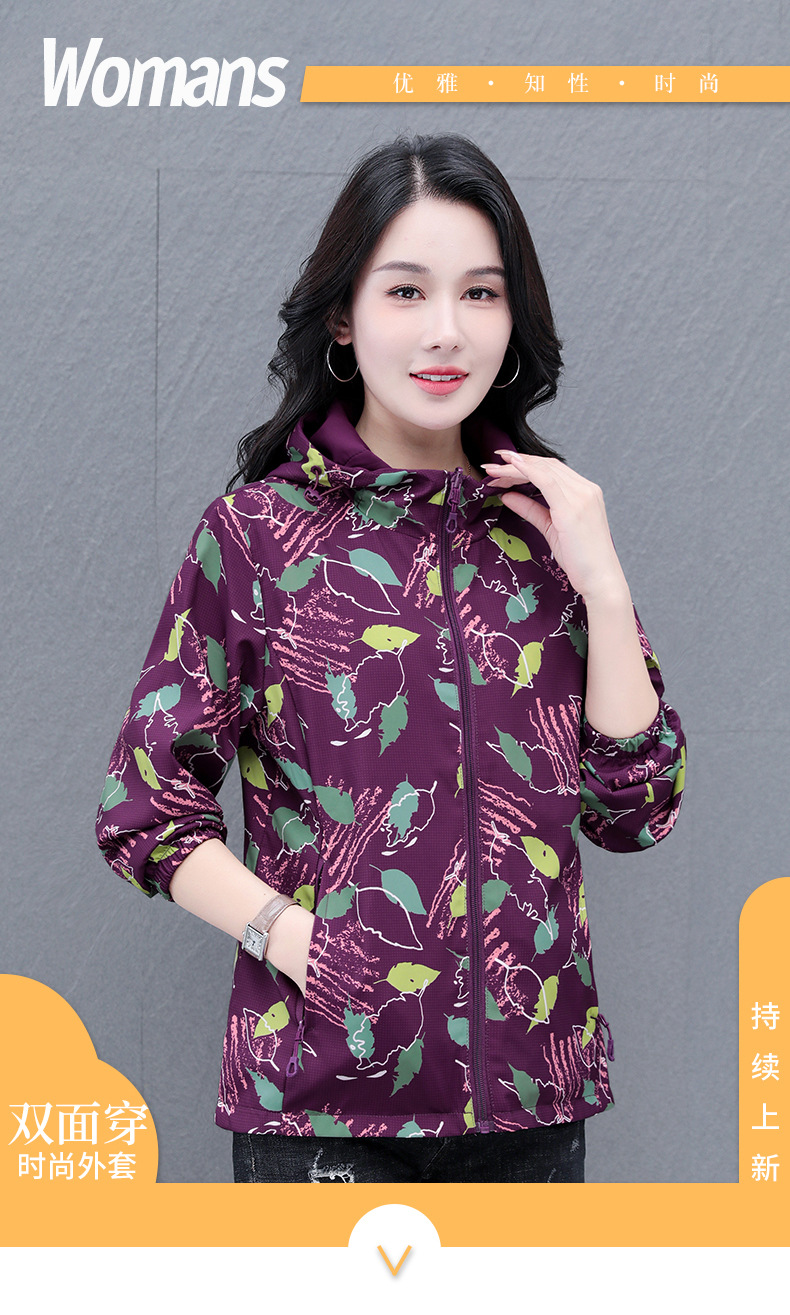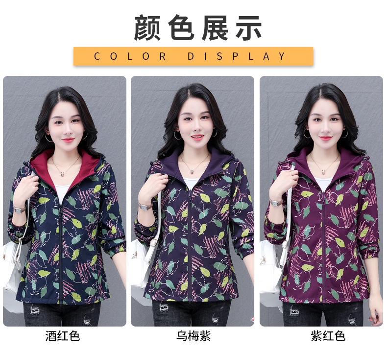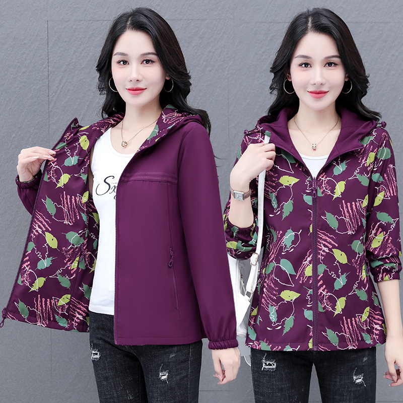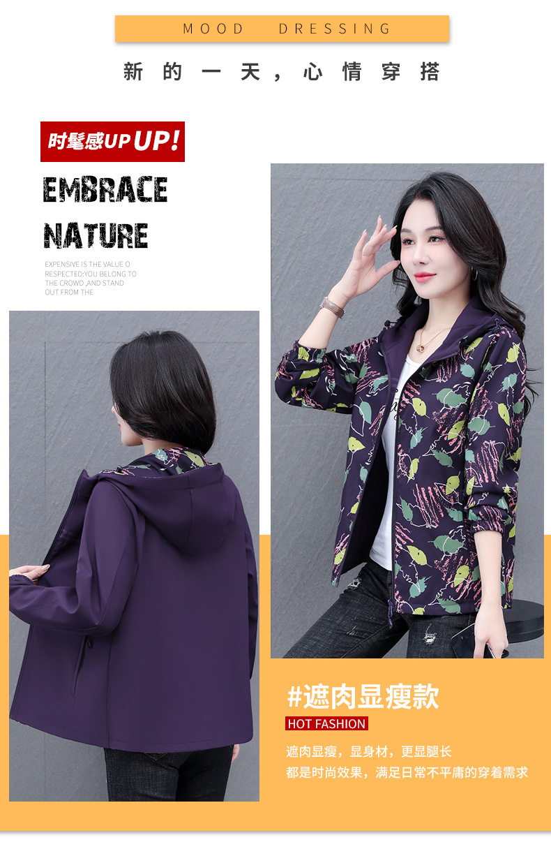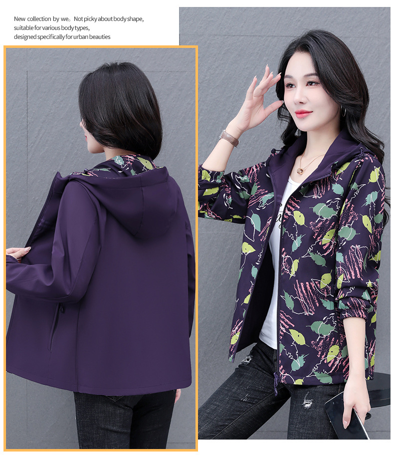 양면 재킷 여성용 봄 가을 얇은 모델 2025 신상 중년 엄마 패션 나이 감소 양면 후드 프린트 코트스토어 가기