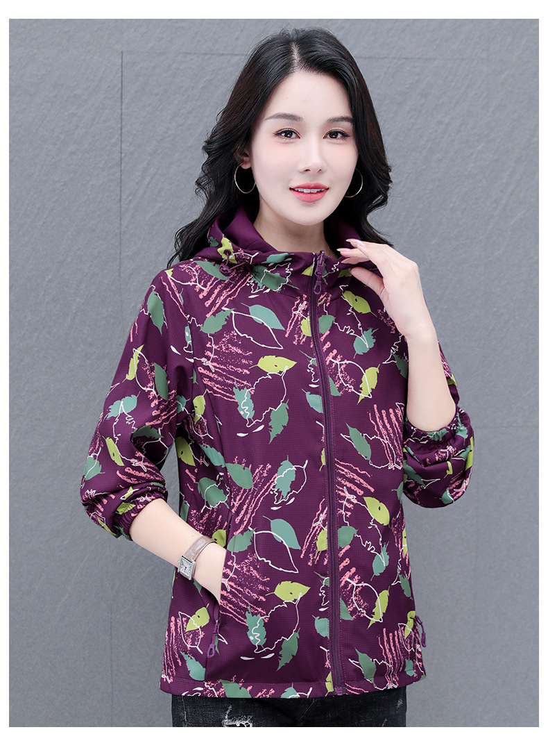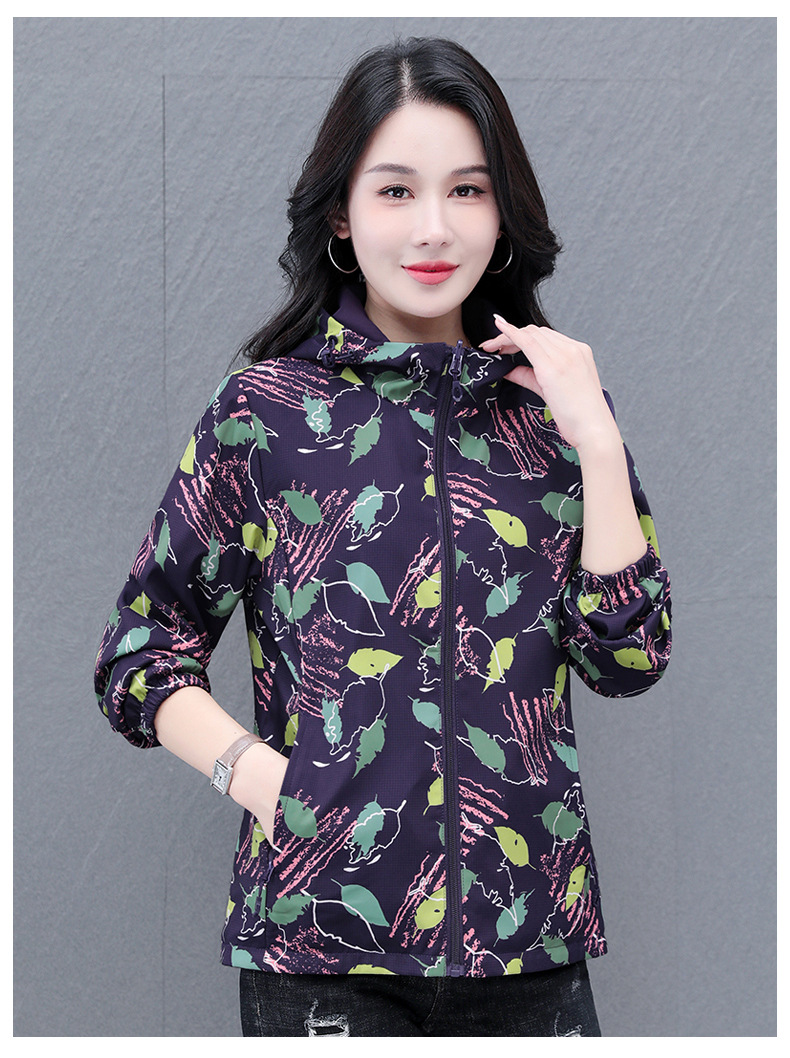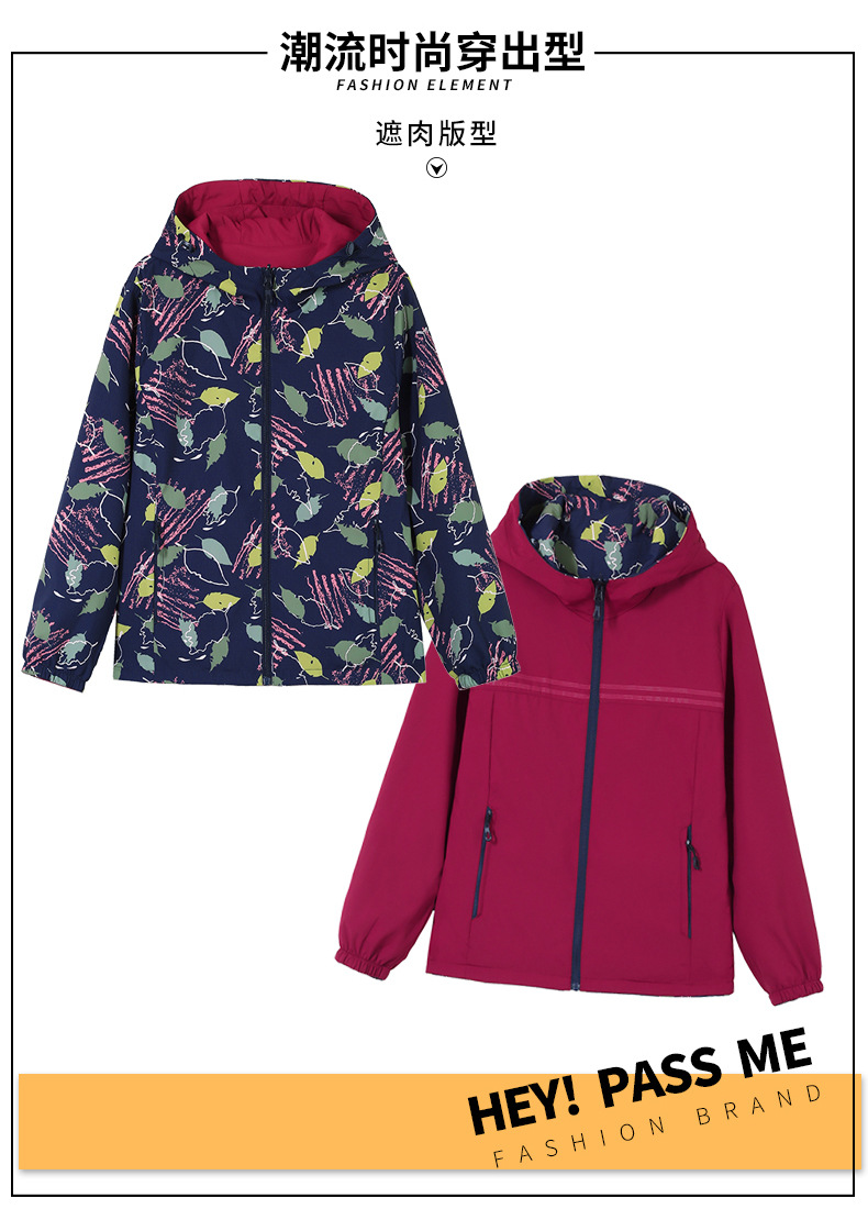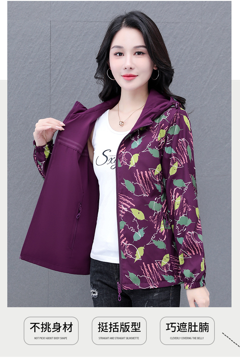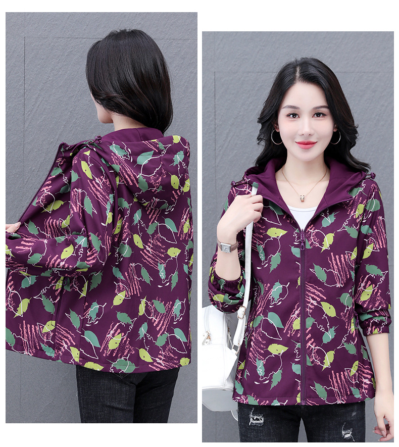 양면 재킷 여성용 봄 가을 얇은 모델 2025 신상 중년 엄마 패션 나이 감소 양면 후드 프린트 코트스토어 가기