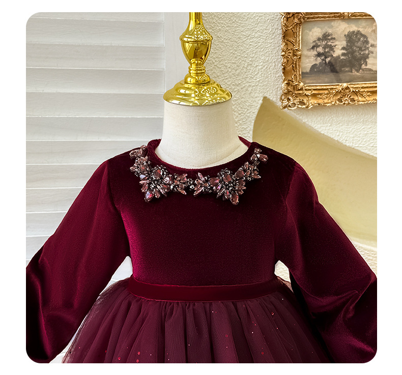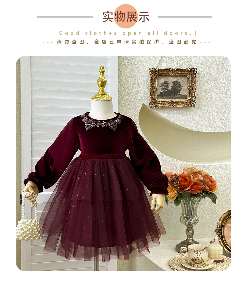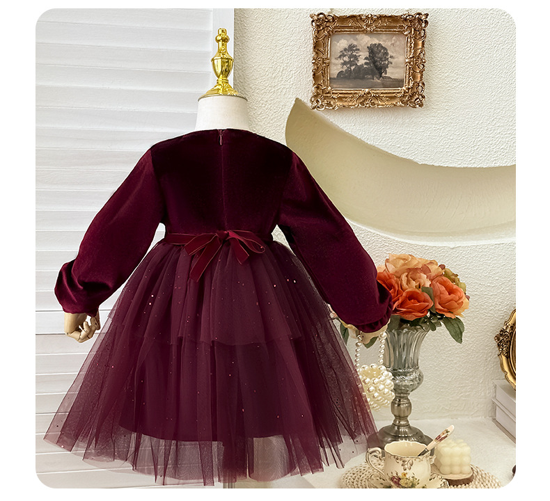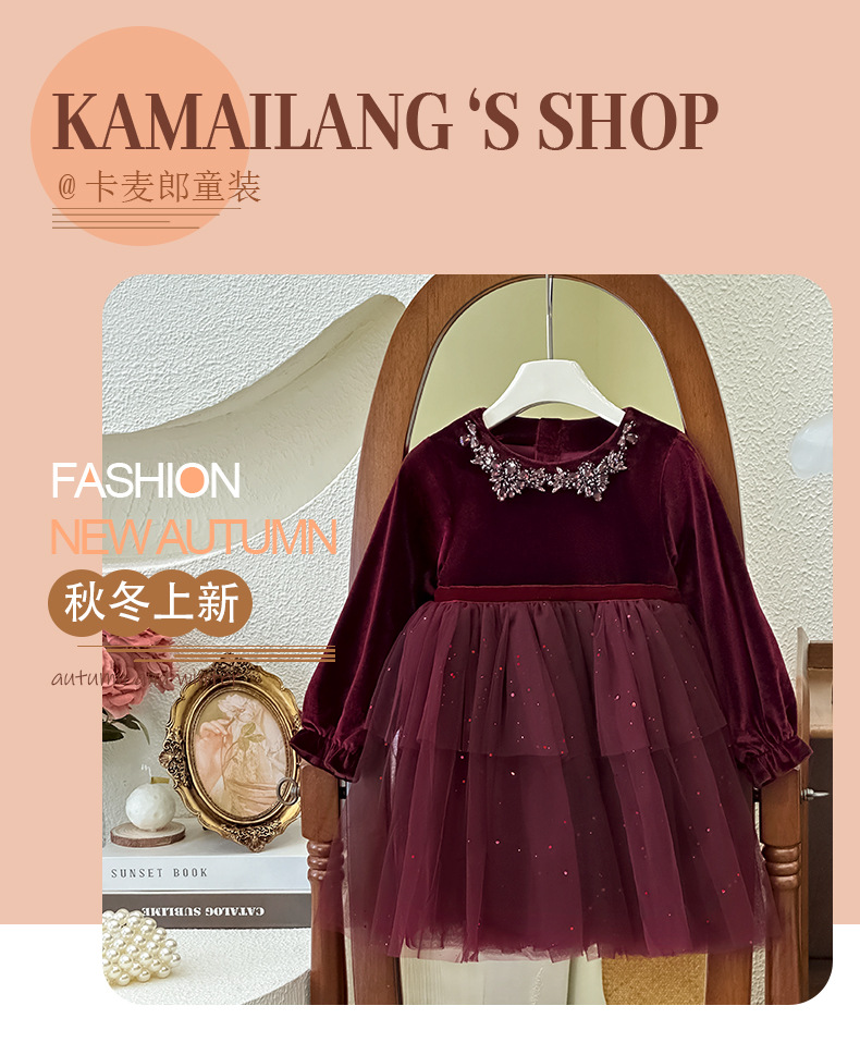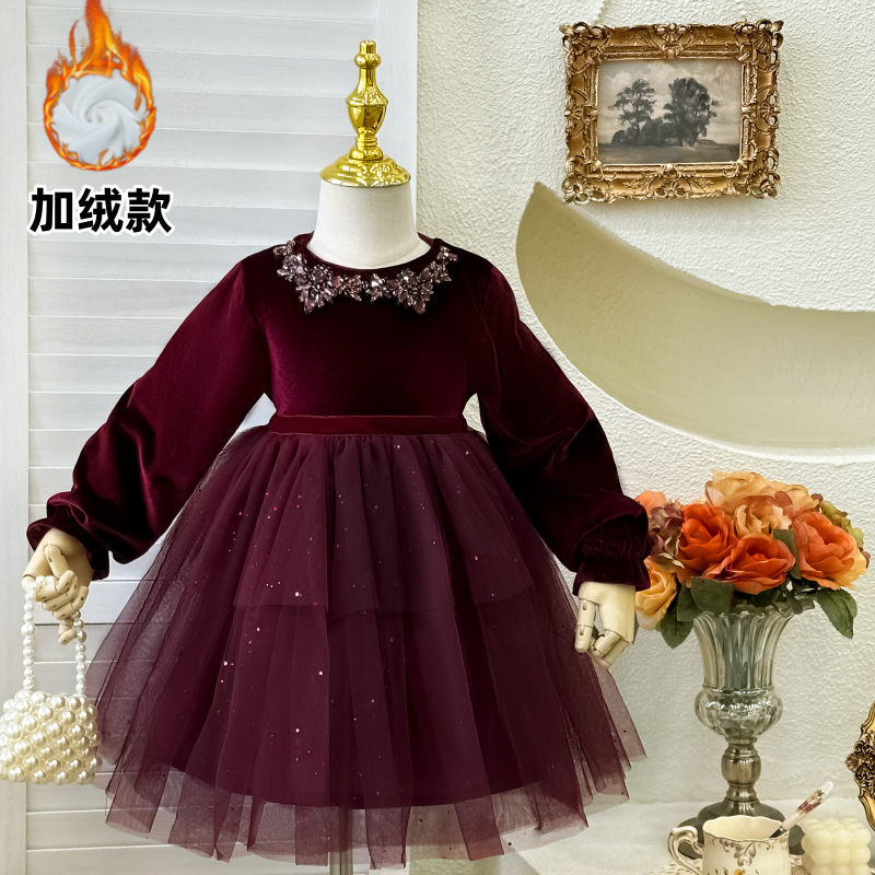 여아용 벨벳 드레스 2025 가을 신상 고급스러운 생일 드레스 세련된 공주 드레스스토어 가기