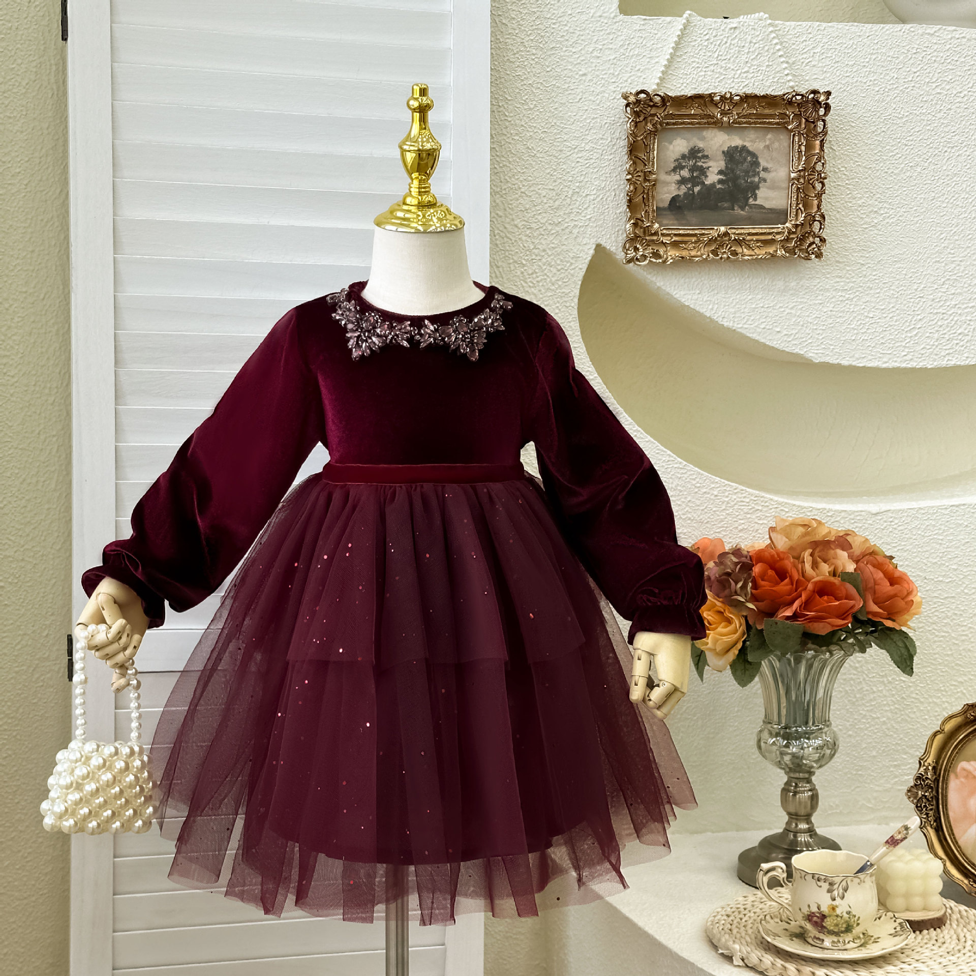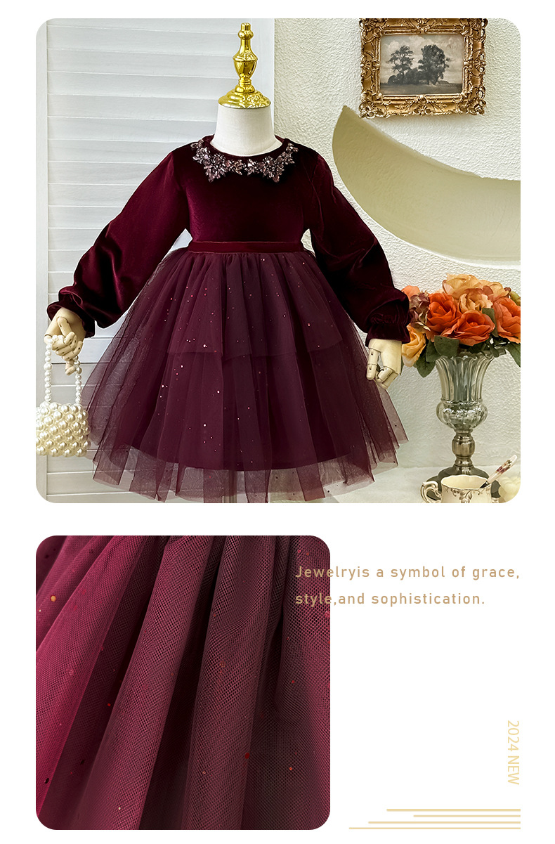 여아용 벨벳 드레스 2025 가을 신상 고급스러운 생일 드레스 세련된 공주 드레스
