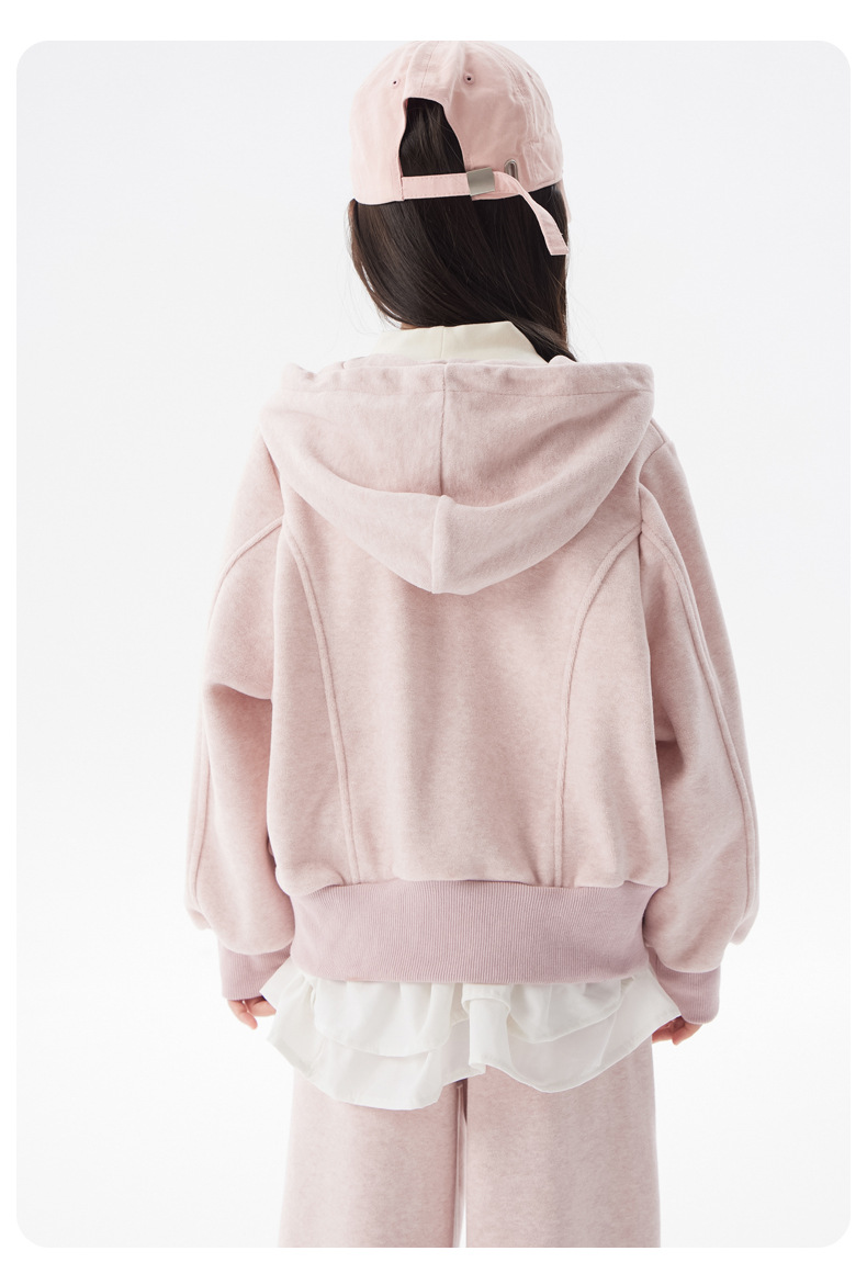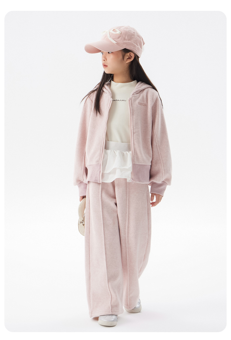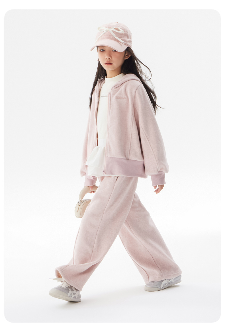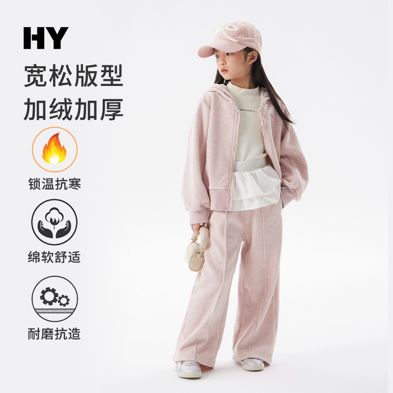 여아용 플리스 세트 2025 봄/겨울 신상 아동용 한국 스타일 두꺼운 옷 중대형 아동용 겨울 후드 투피스 세트