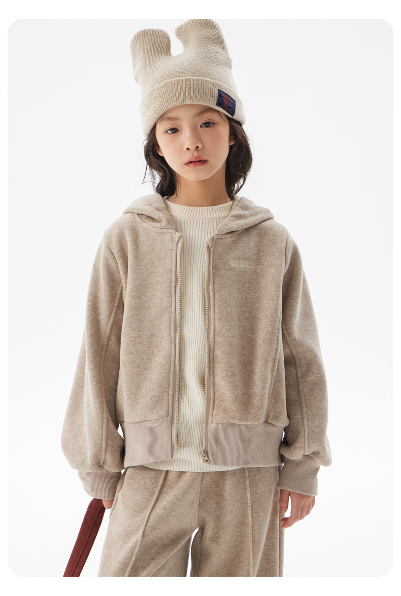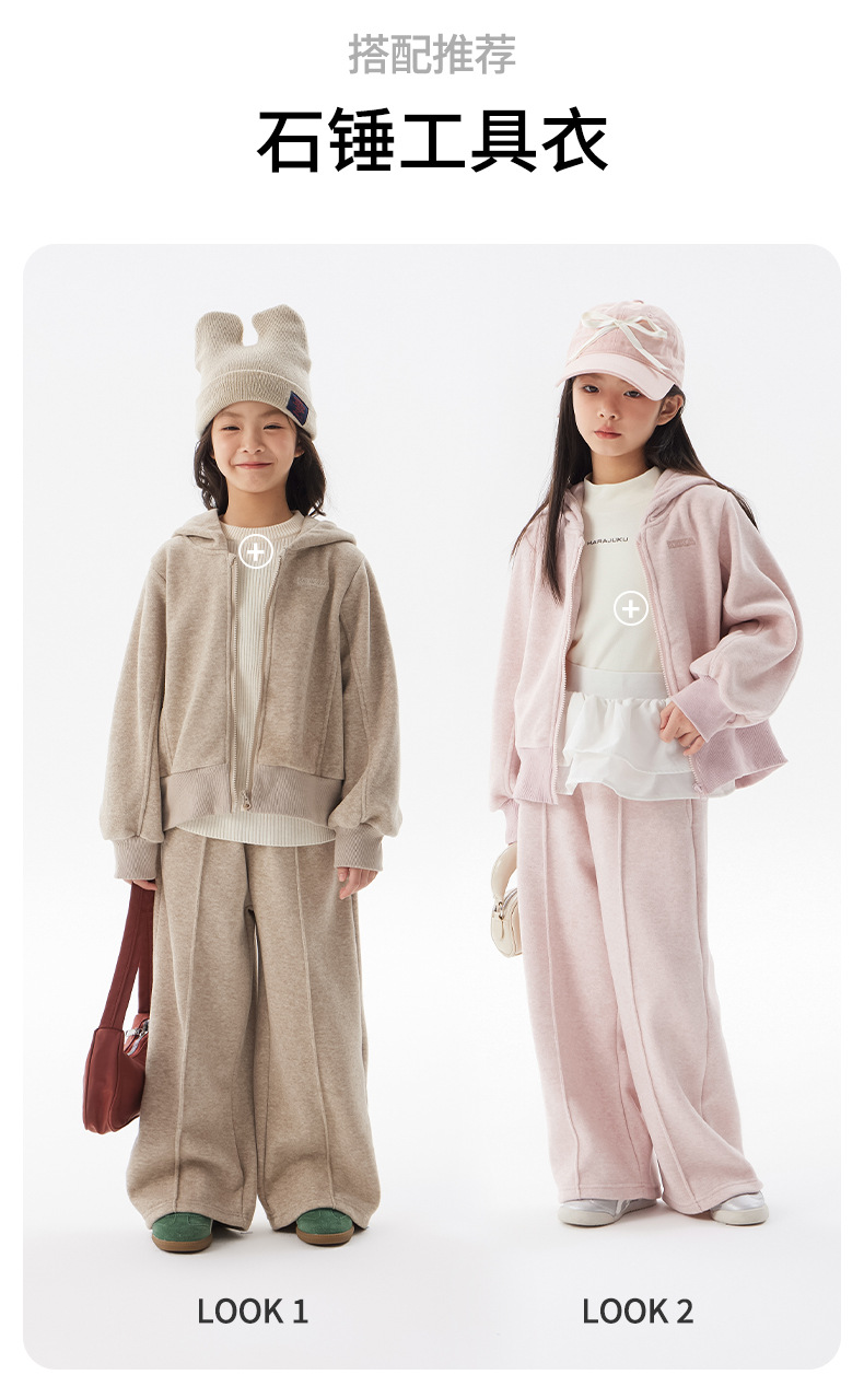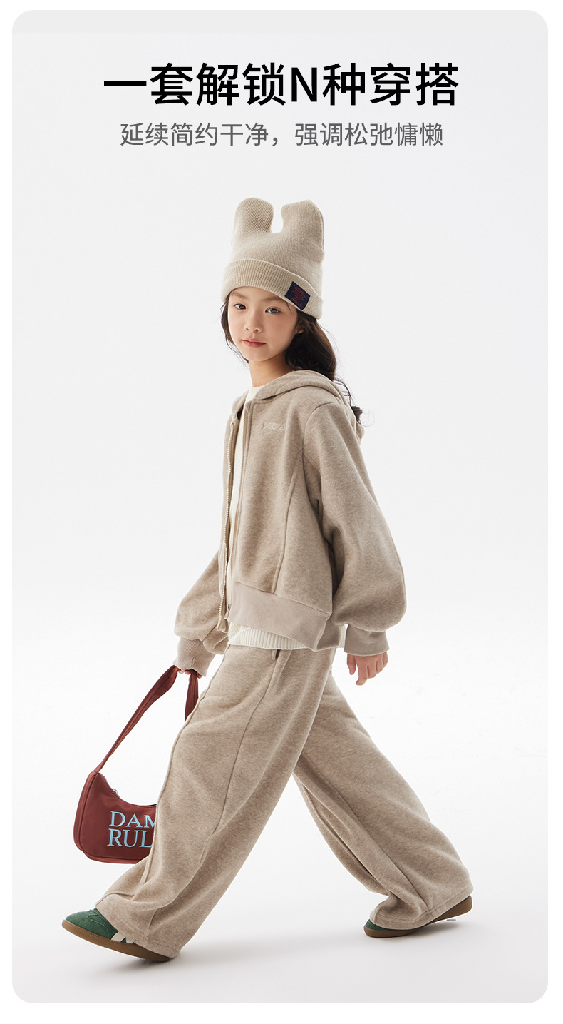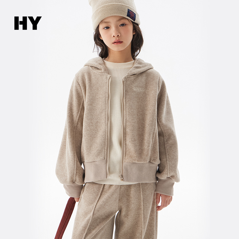 여아용 플리스 세트 2025 봄/겨울 신상 아동용 한국 스타일 두꺼운 옷 중대형 아동용 겨울 후드 투피스 세트