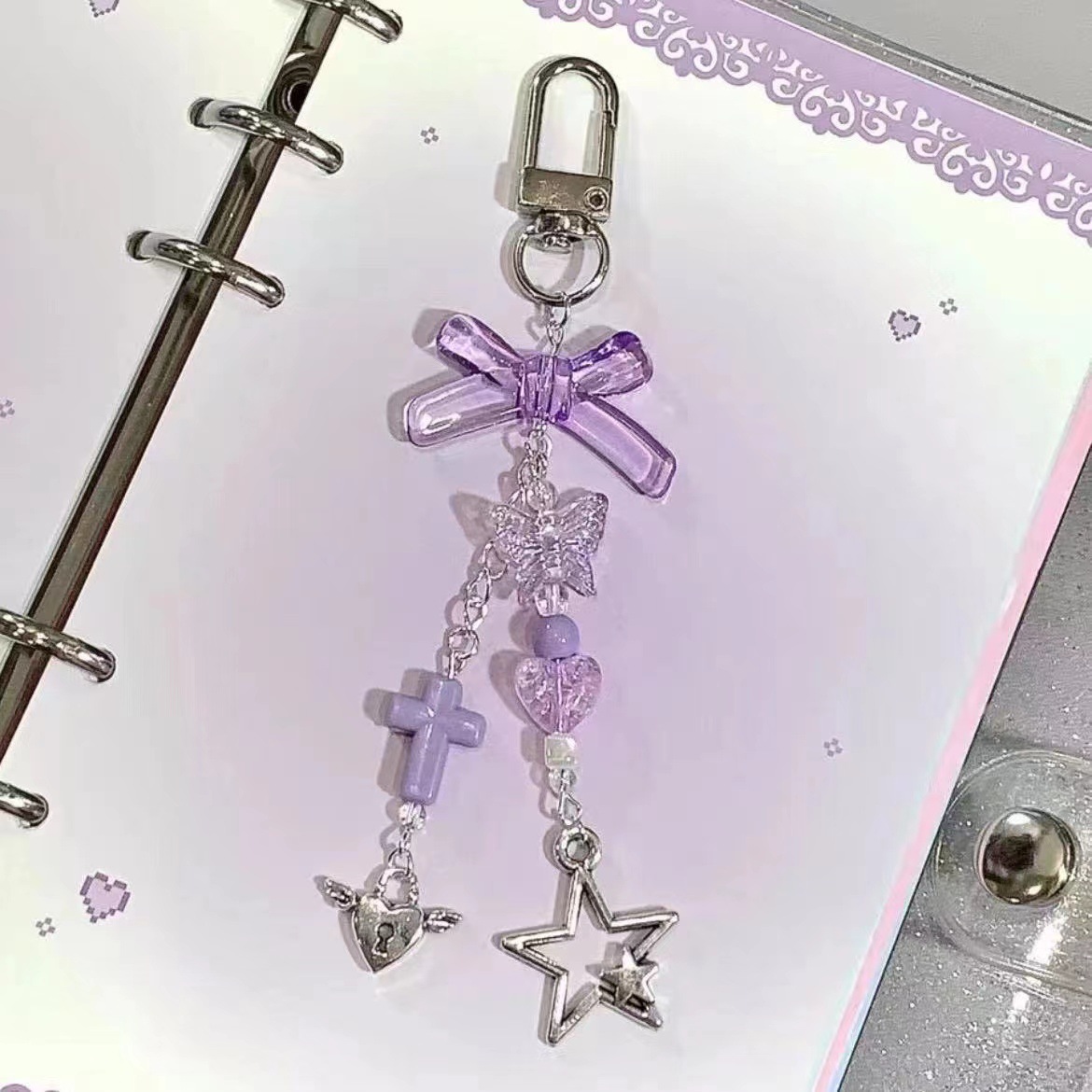 • 보라색 나비 별 바다 열쇠고리