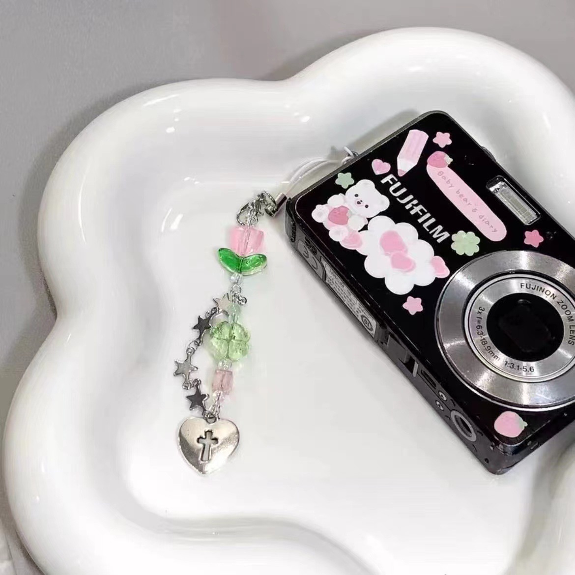 [푸른 조각] 네 잎 클로버 구슬 원래 구벤 체인 구벤 펜던트 비즈 소녀 하트 휴대 전화 체인스토어 가기