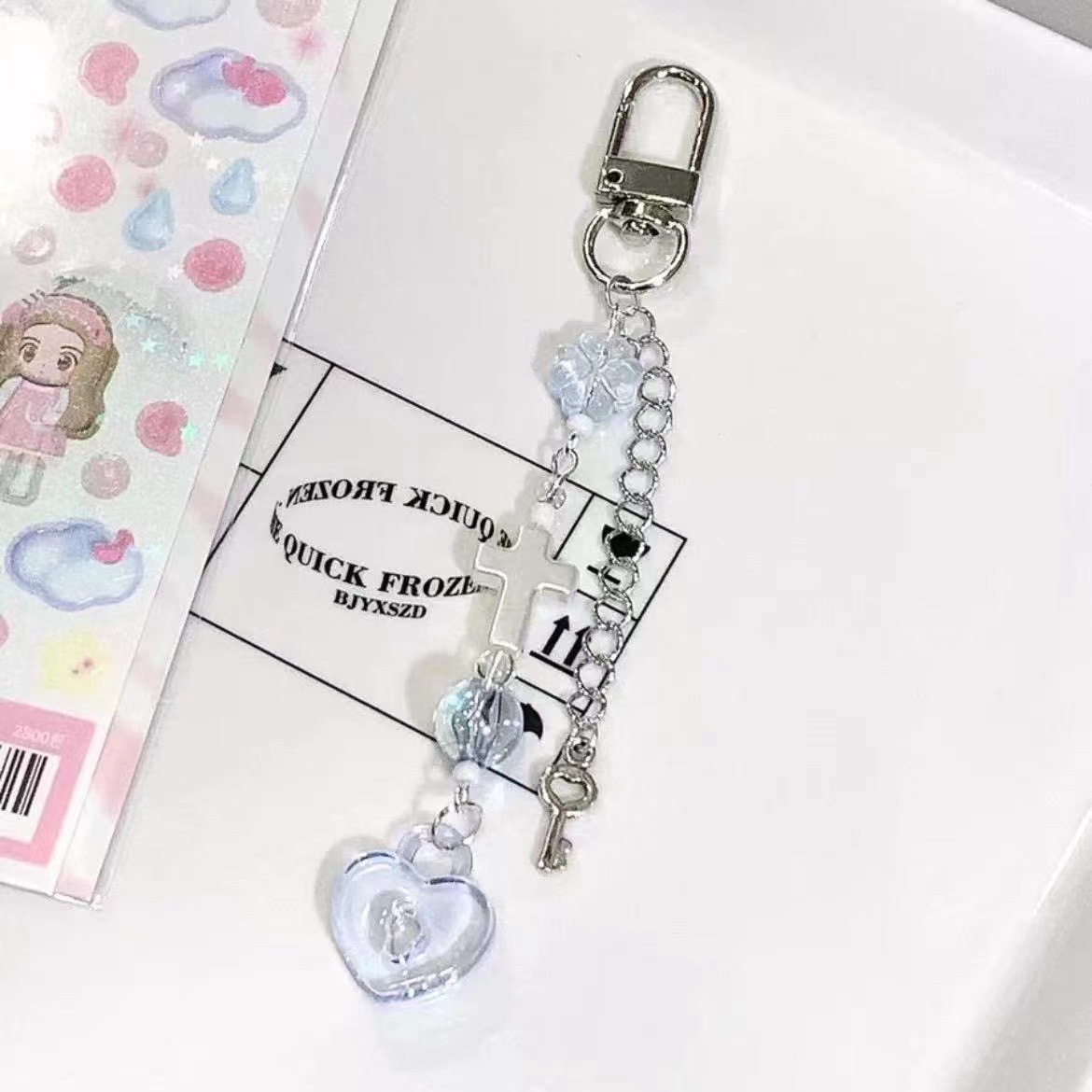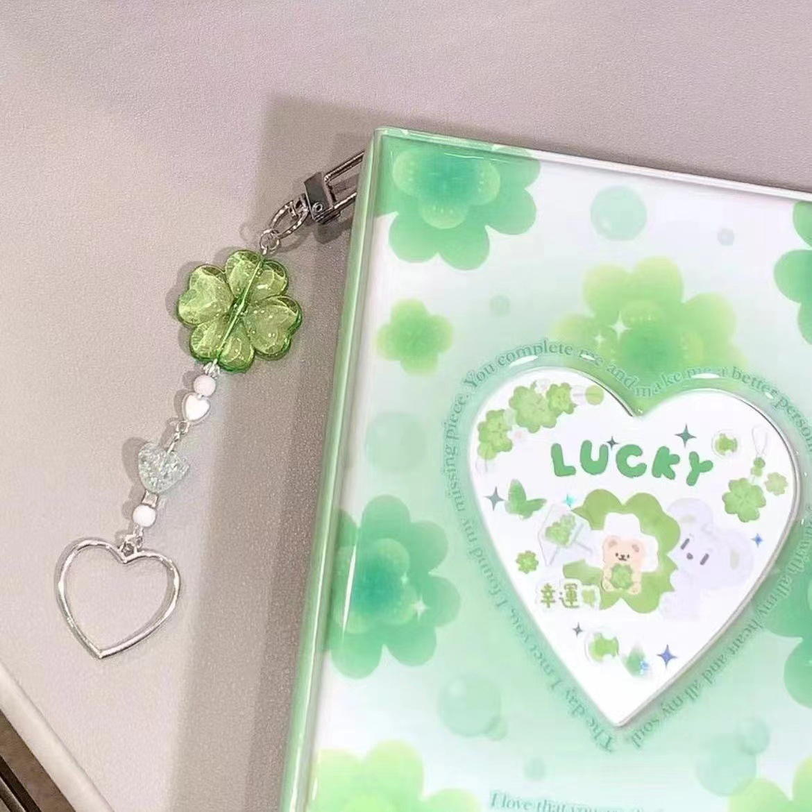 [푸른 조각] 네 잎 클로버 구슬 원래 구벤 체인 구벤 펜던트 비즈 소녀 하트 휴대 전화 체인