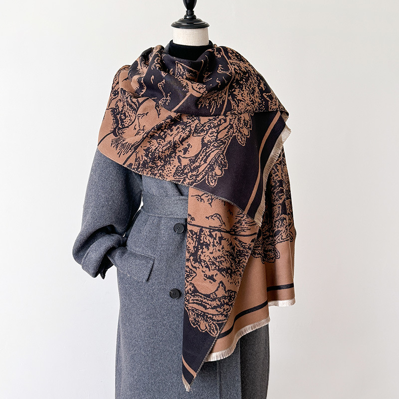 가을과 겨울 2024 따뜻한 술 새 스타일 전쟁 말 폭발 긴 수건 여행 추위와 바람을 지키는 여성 망토스토어 가기