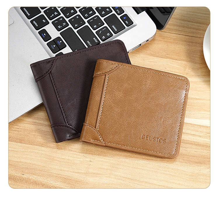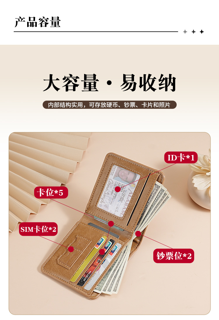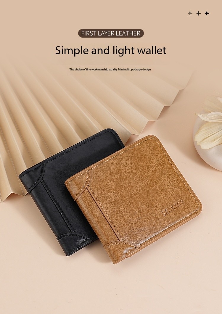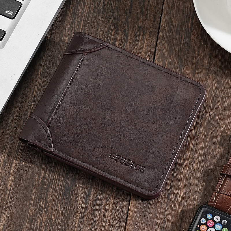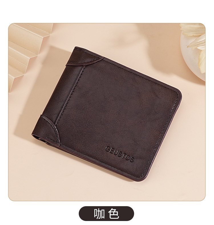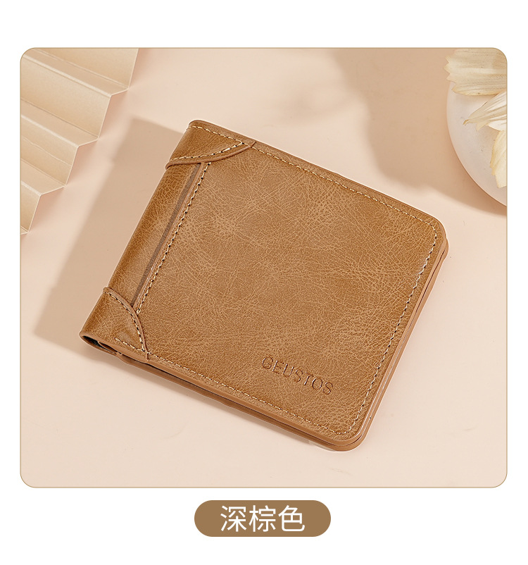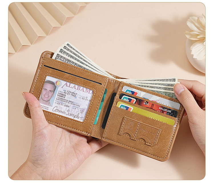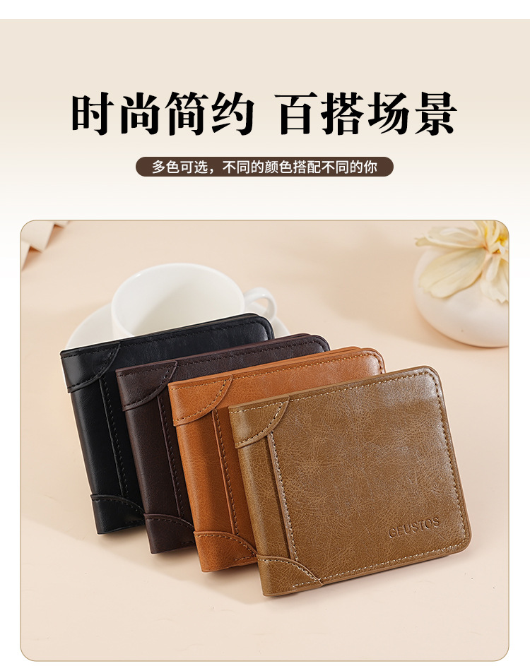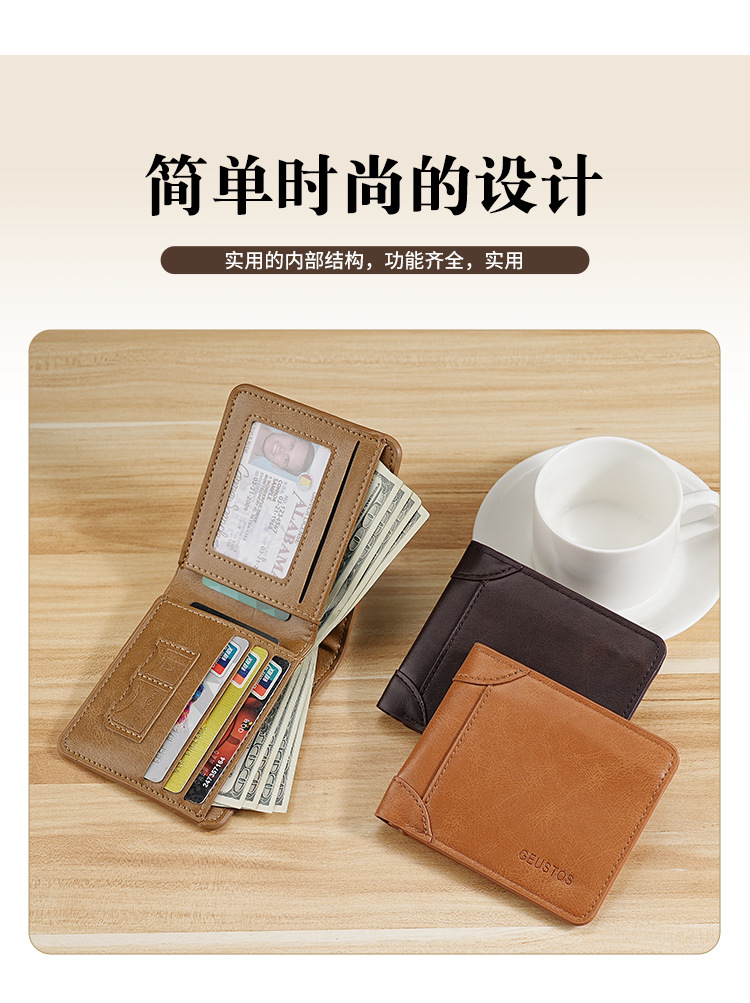남성용 지갑 쇼트 2024 새 가죽 운전 면허증 카드 홀더 올인원 멀티 기능 남성 지갑 카우히데 텍스처
