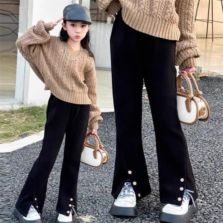 어린이 기모 바지 가을과 겨울 아기의 원피스 플라 바지 서양식 소녀의 봄 두꺼운 유행 바지