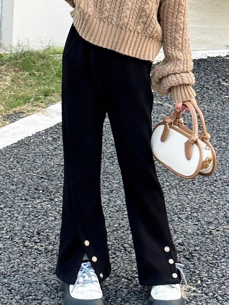 • 블랙 쓰리버튼 플리스 팬츠 [고급버전]