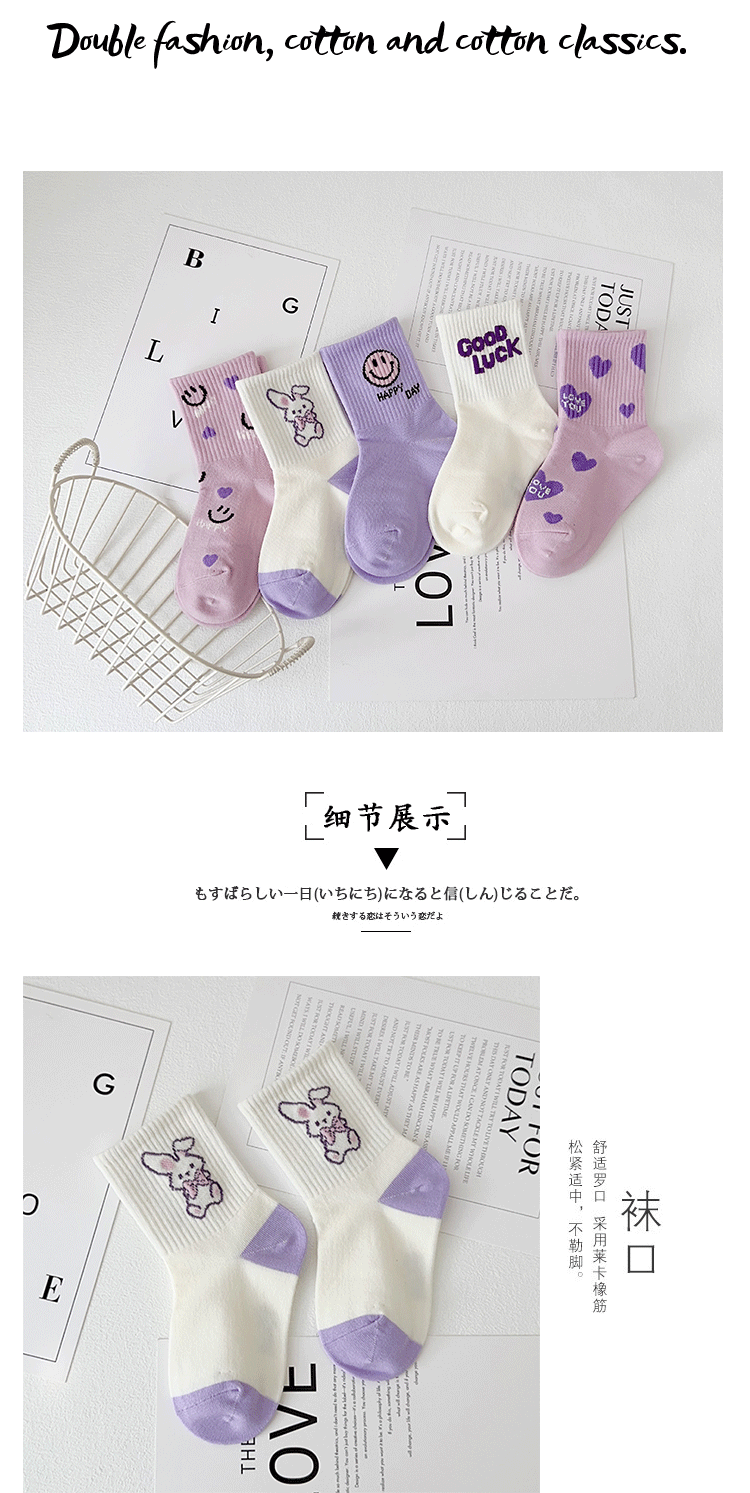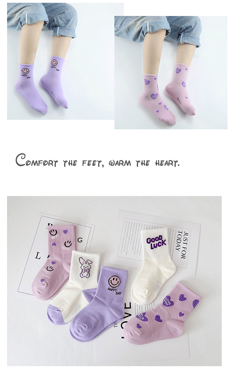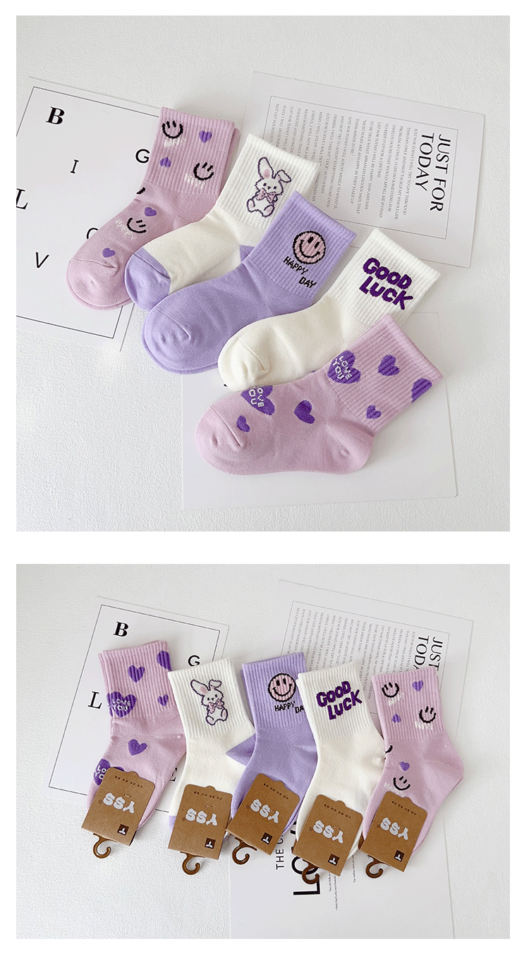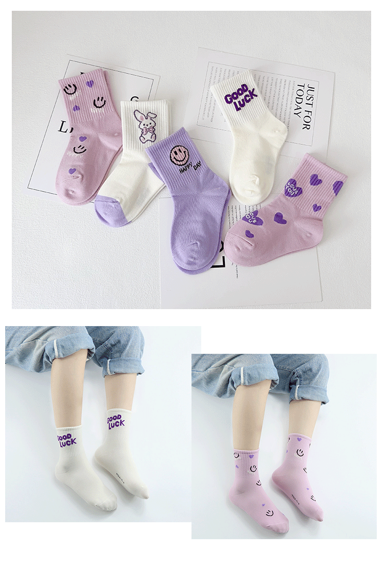 어린이 양말의 이쌍 가을 · 겨울 새 만화 스마일리 중견 빗질면 한국 스마일리 걸스 스포츠 양말