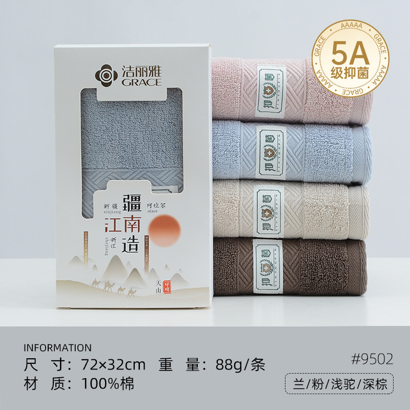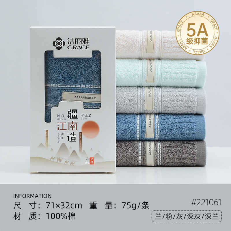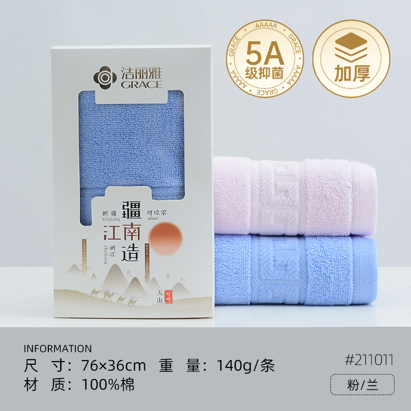 Jielia 단일 박스 신강 사우스 만든면 5A 항균 타월 자수 로고 Jielia 수건 선물 상자