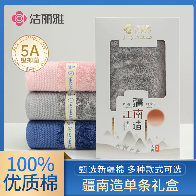 Jielia 단일 박스 신강 사우스 만든면 5A 항균 타월 자수 로고 Jielia 수건 선물 상자스토어 가기