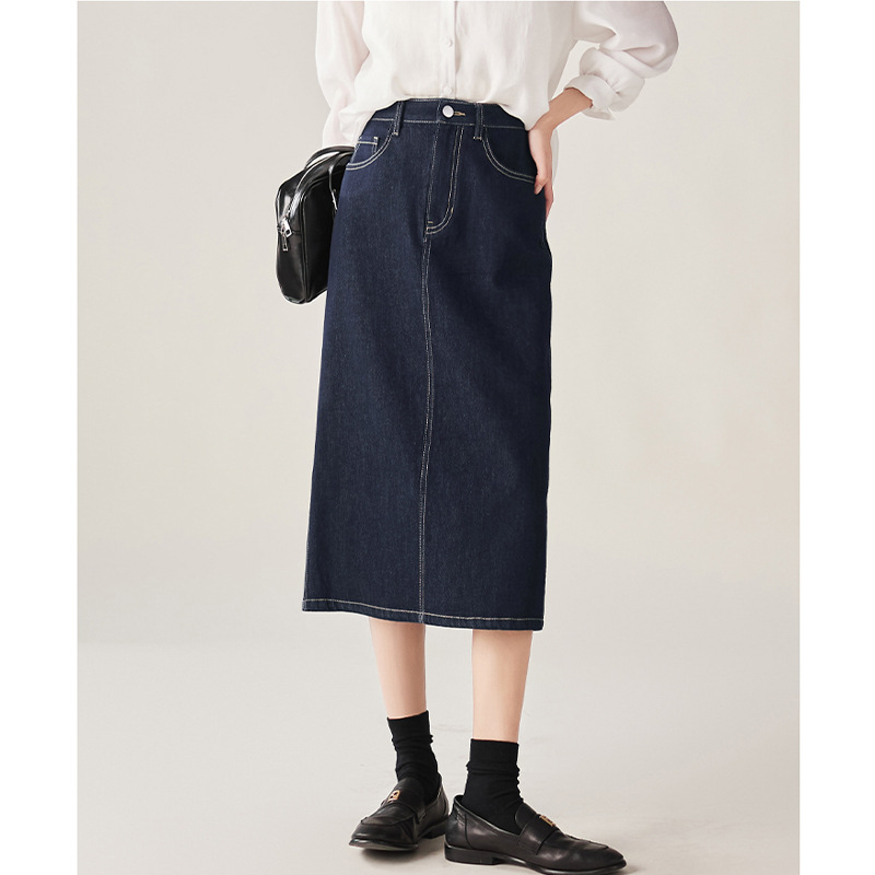가을 2024 새로운 패션 높은 허리 직선 튜브 슬리밍 후면 분할 데님 스커트스토어 가기